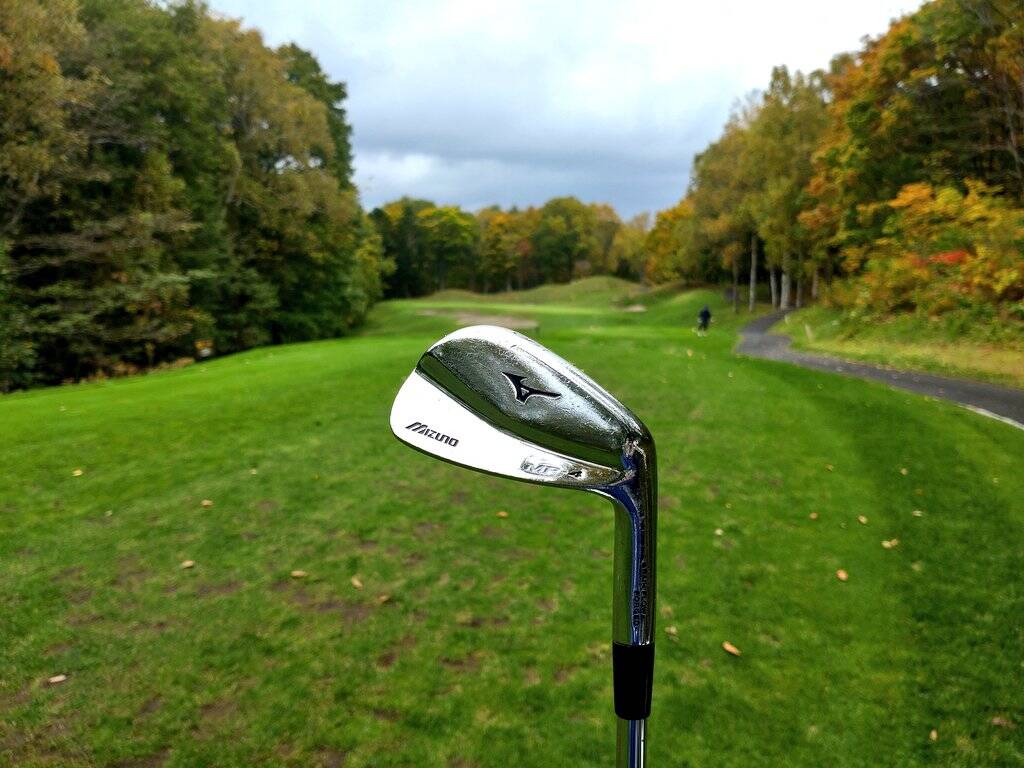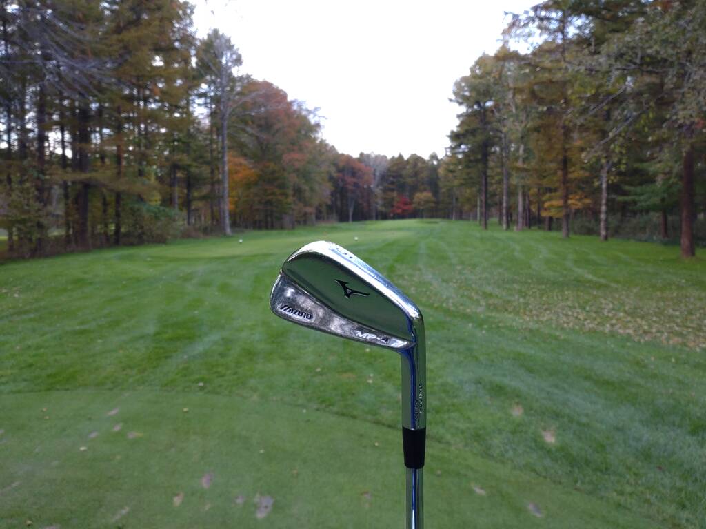 今回はウッド類は持たずミズノMP-4アイアンとウェッジのみ持参し、わざとにグリーンに乗せないでアプローチやバンカーの練習をメインにしてみましたが、気温10℃と冷え込んだせいで球の掴まりが悪く普通にプッシュ多発でした。