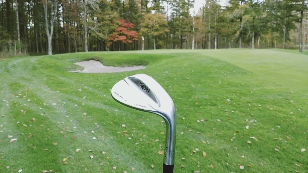 ここ最近苦手となったグリーン周りのアプローチやバンカーショットですが、バンス角08度ロフト58度のHONMA製ウェッジが合うようで、フェイスを開いてバンスを使いソールを滑らせるように打つと上手く寄せる事が出来ました。
