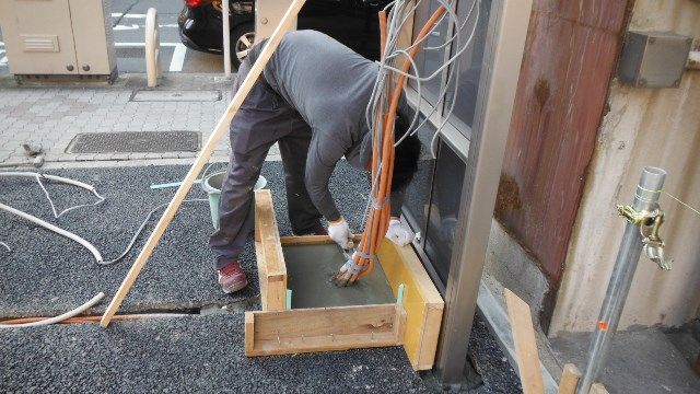 ② アスファルトを敷く前に電気の配管を地中に埋めます。