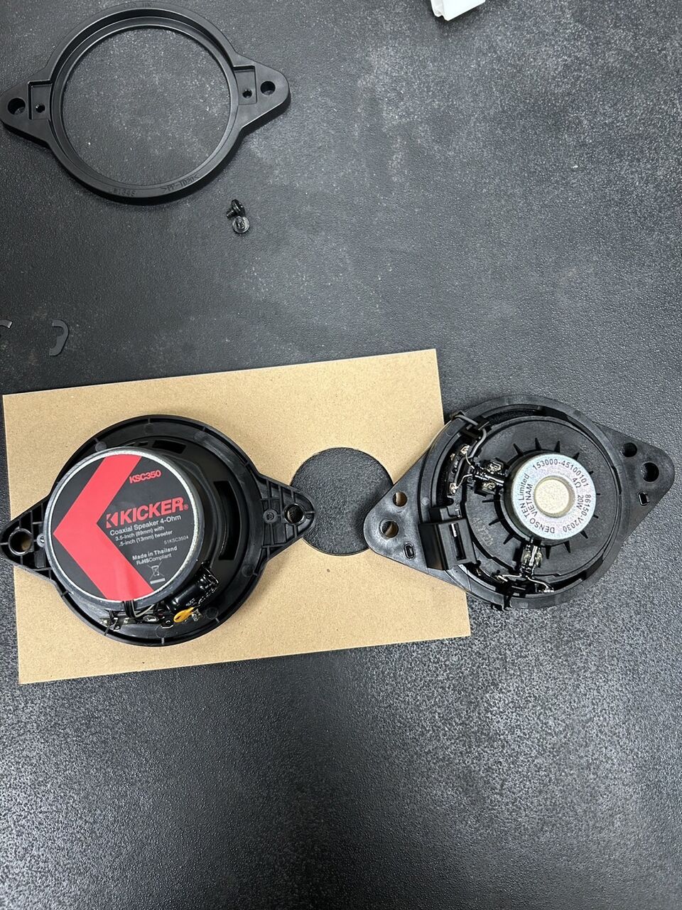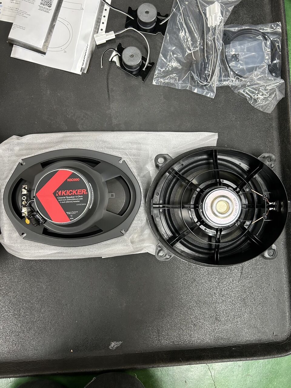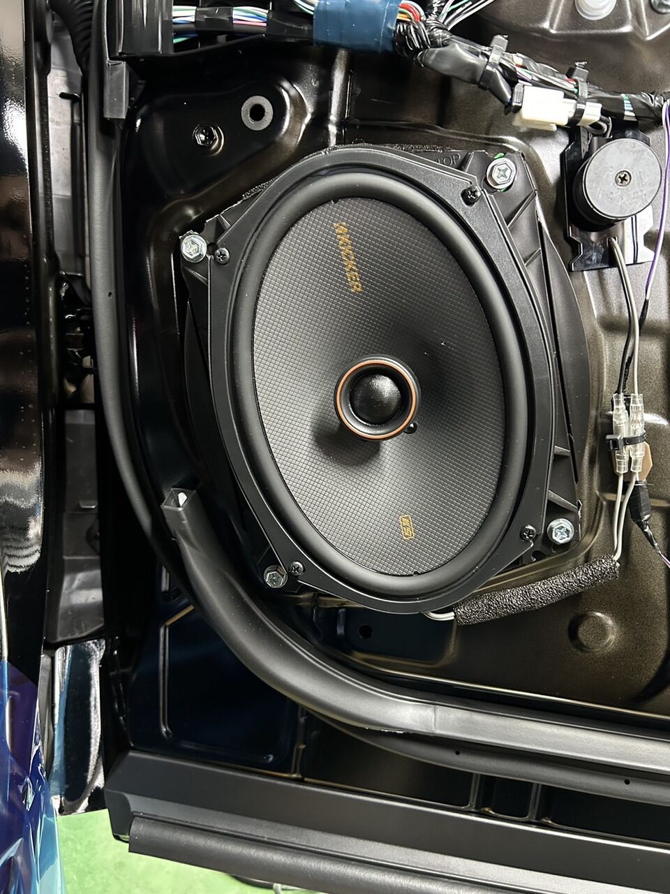 フロントスピーカーを純正からKICKERの専用モデルに交換させていただきました