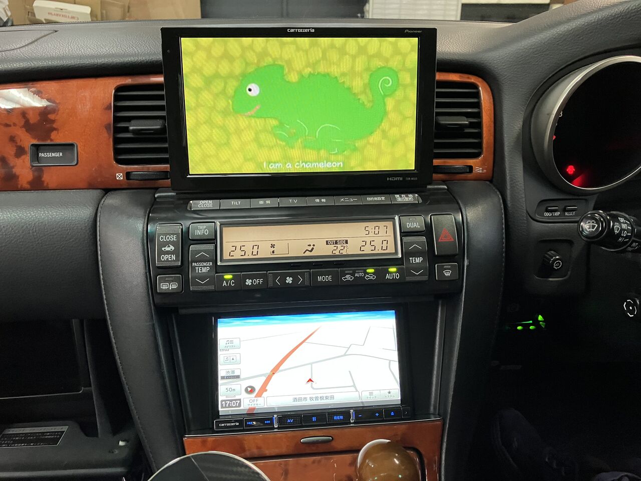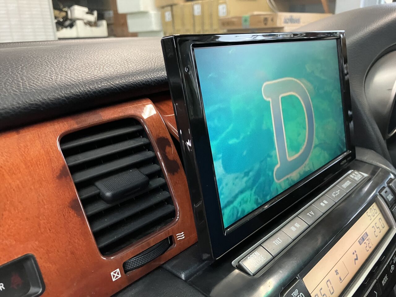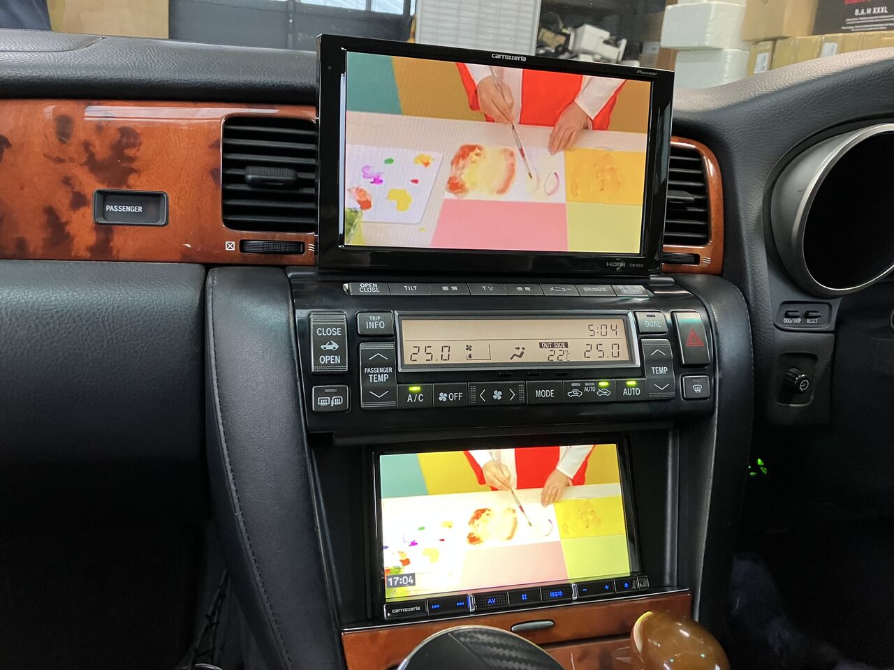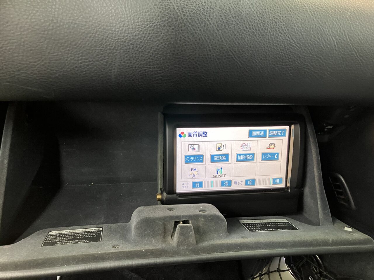 純正モニターはグローブBOX内に移設して、9インチモニターを加工取付けさせていただきました。