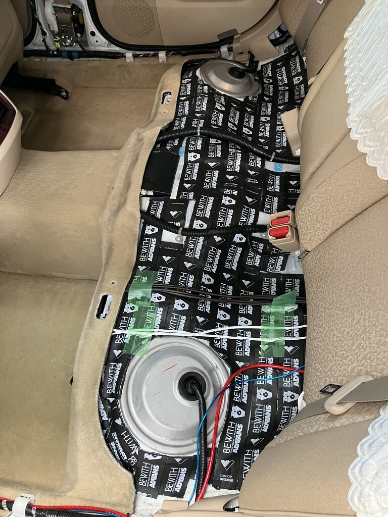 今回はラゲッジ部とフロア面を施工させていただきました。施工後は静粛性のアップだけではなく、サブウーハーの低音の聴こえ方までかなり変わったとのお喜びの声をいただきました