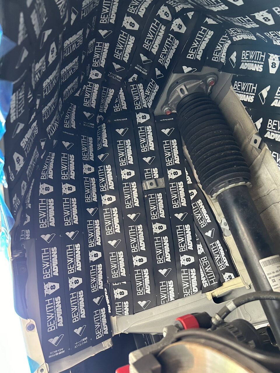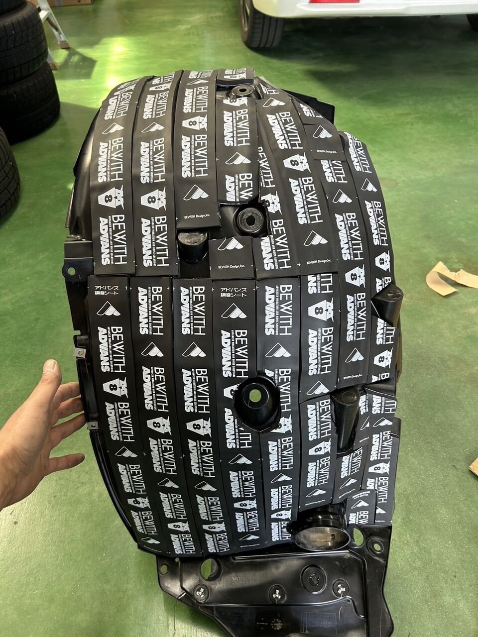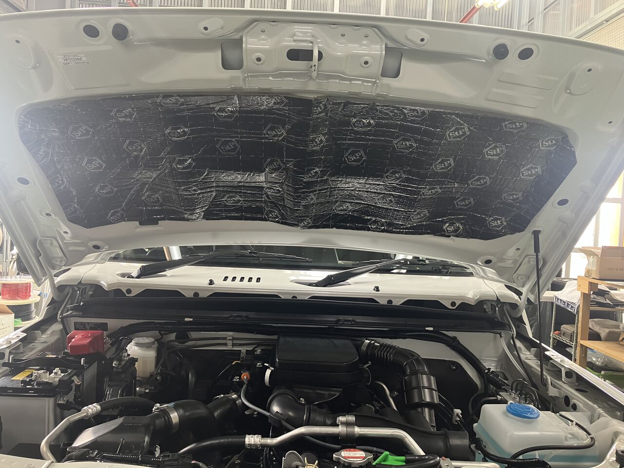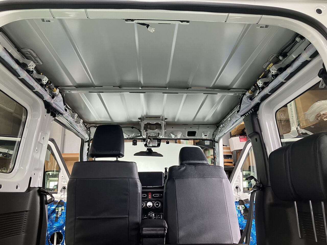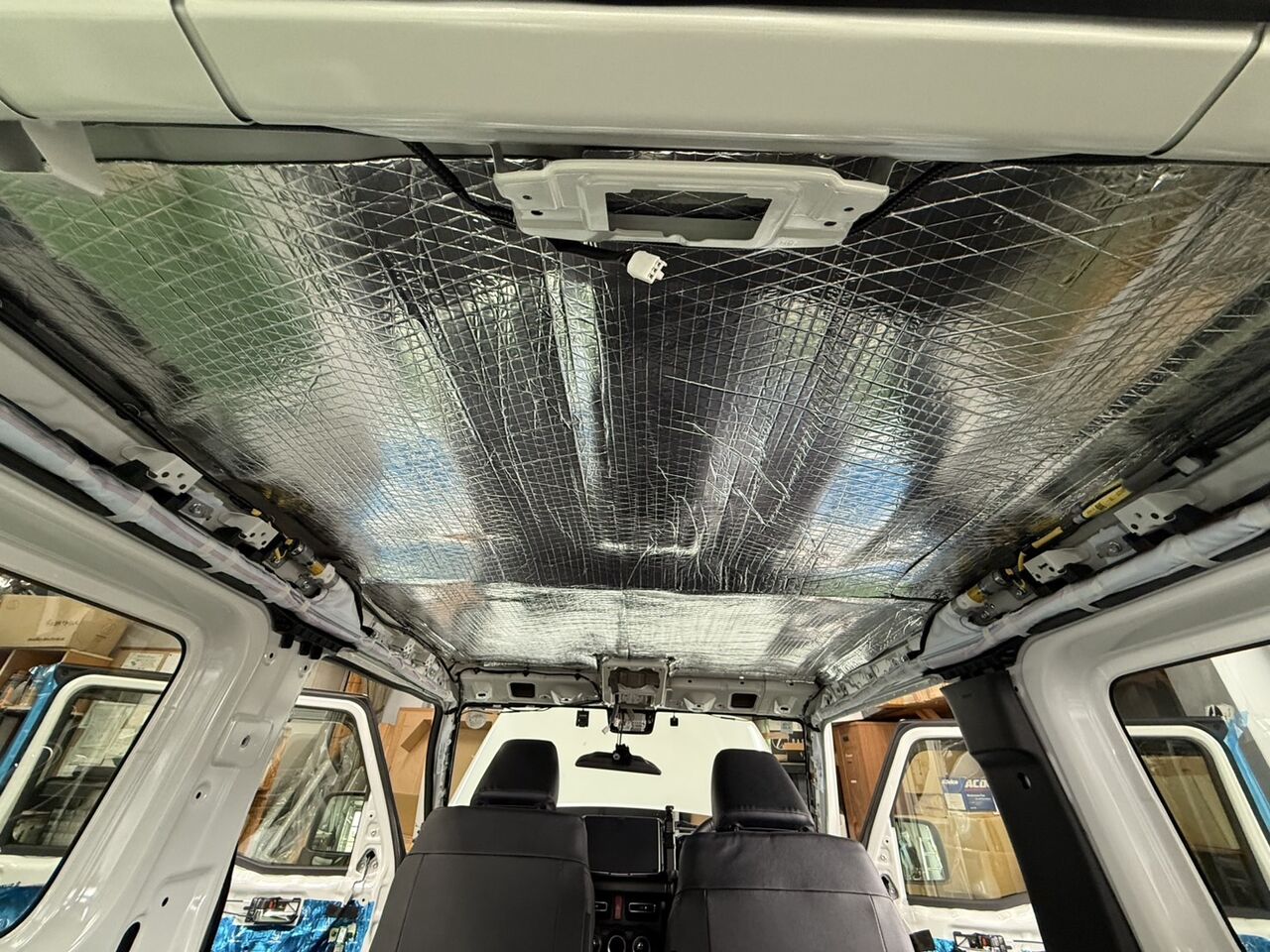 ルーフは遮熱、断熱、吸音効果の高い部材(ヒートシールドラグ)を全面に施工。下地には制振材も施工しております。
