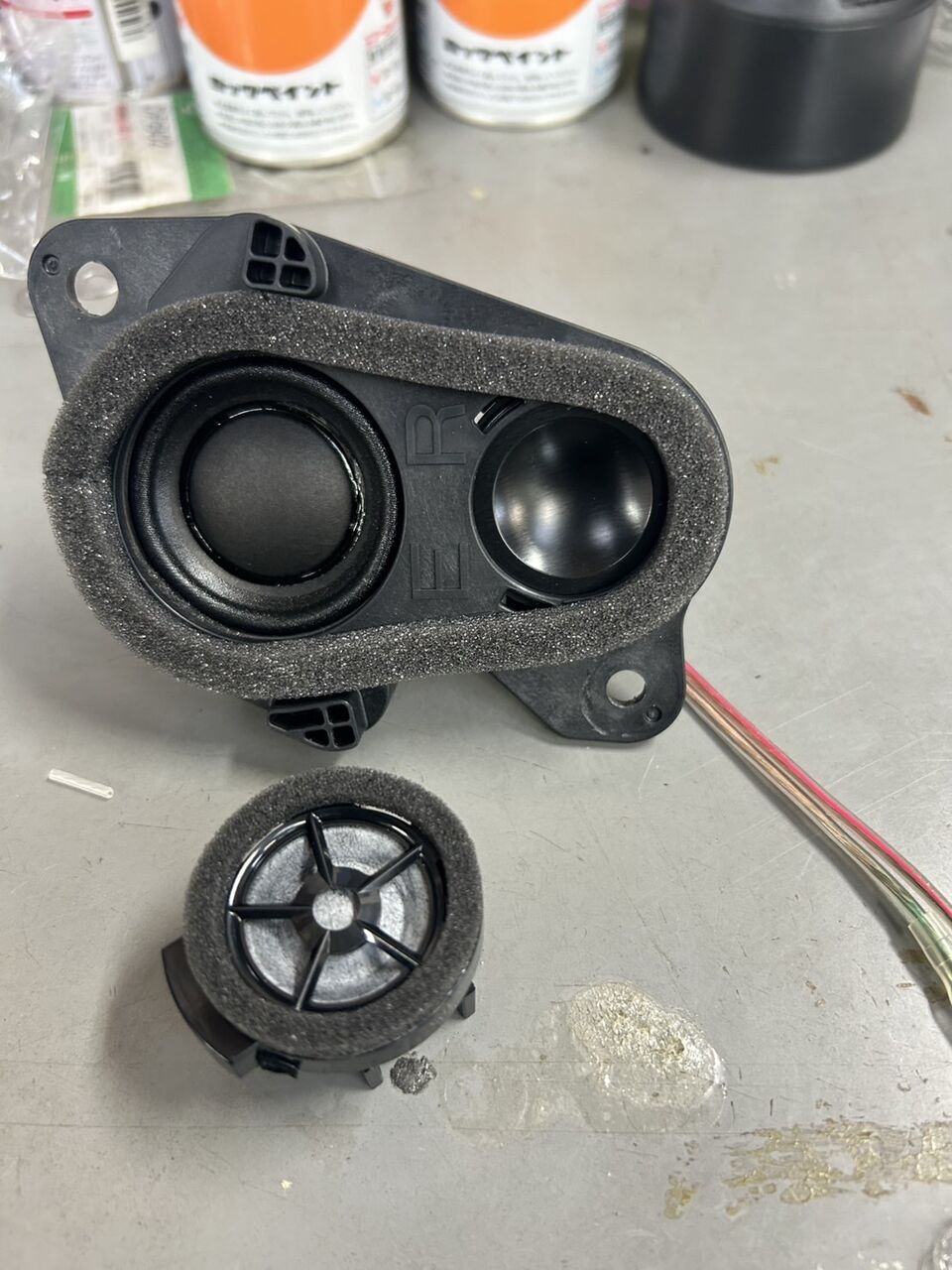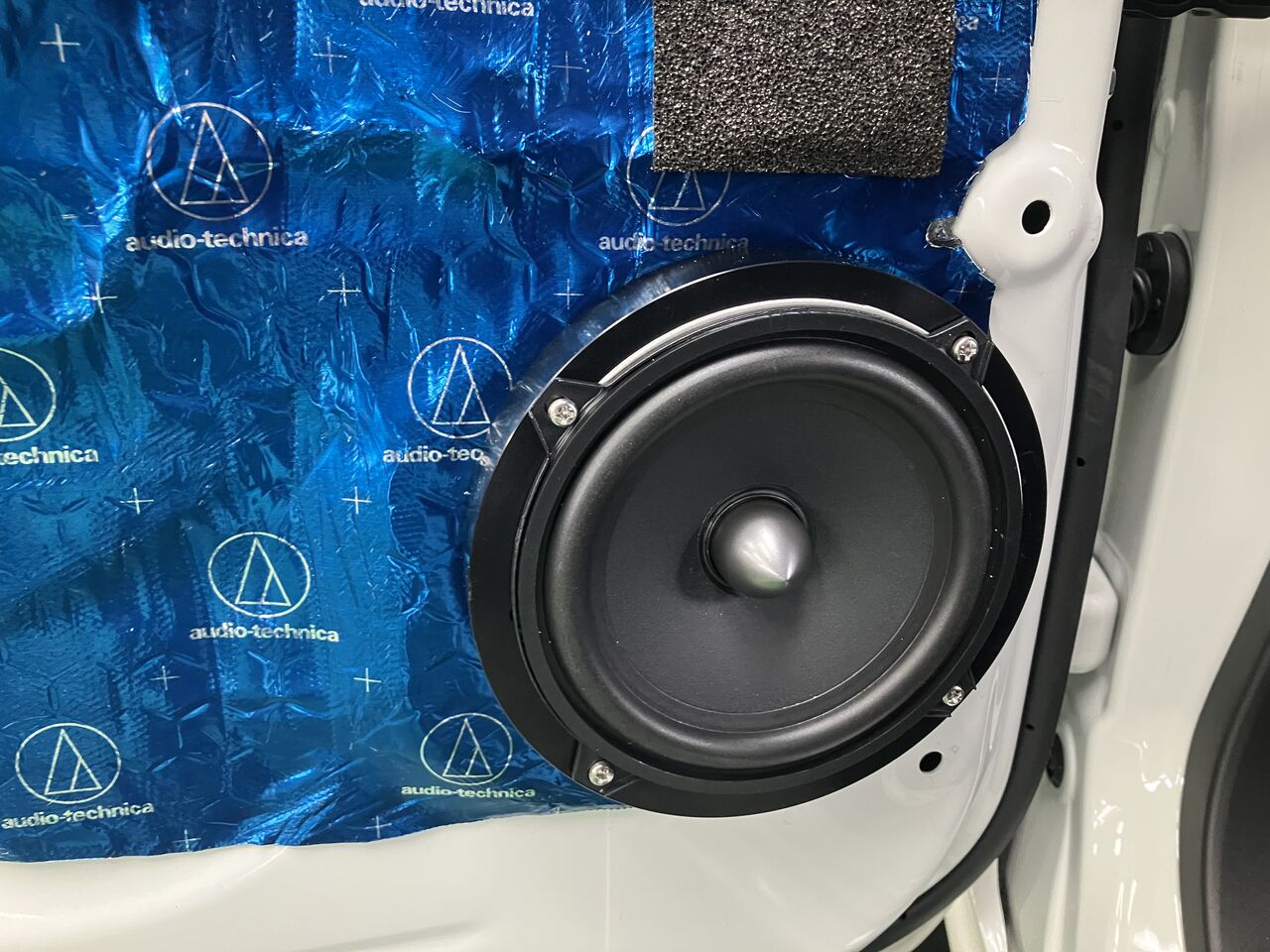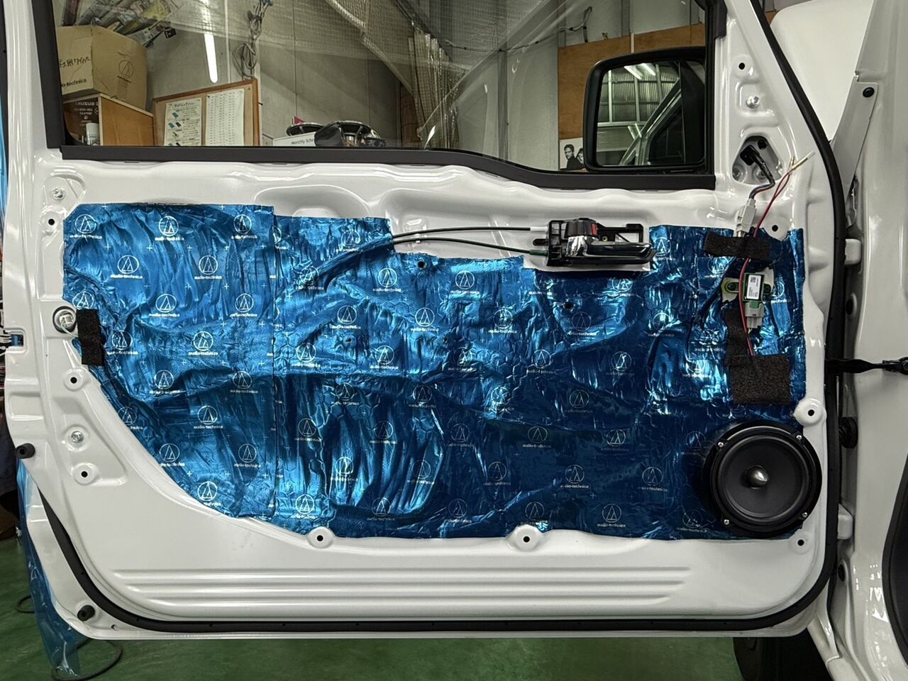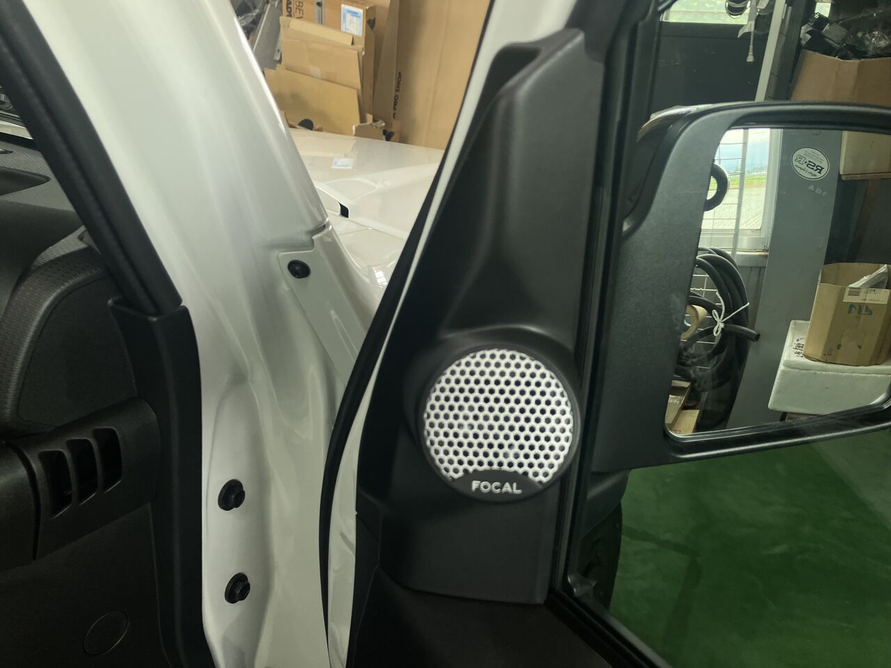 フロントスピーカーはフォーカルのジムニー(JB64)専用モデルをデッドニング施工して取付。
