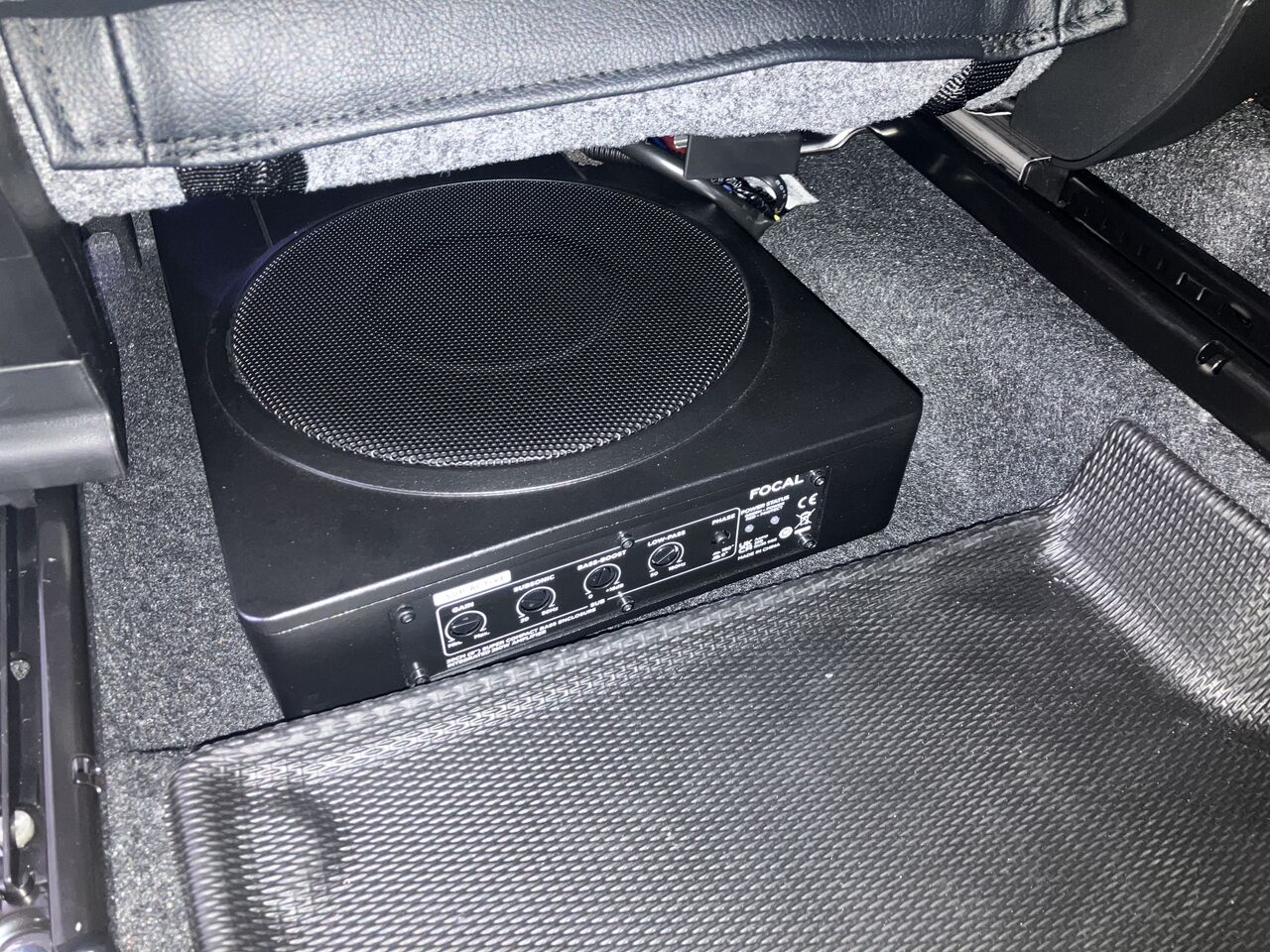 パワードウーハーもフォーカル(ISUB-ACTIVE)をシート下に設置。ジムニーはシート下にきれいに収まります。