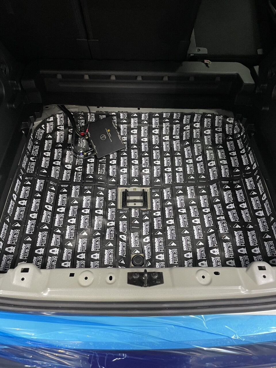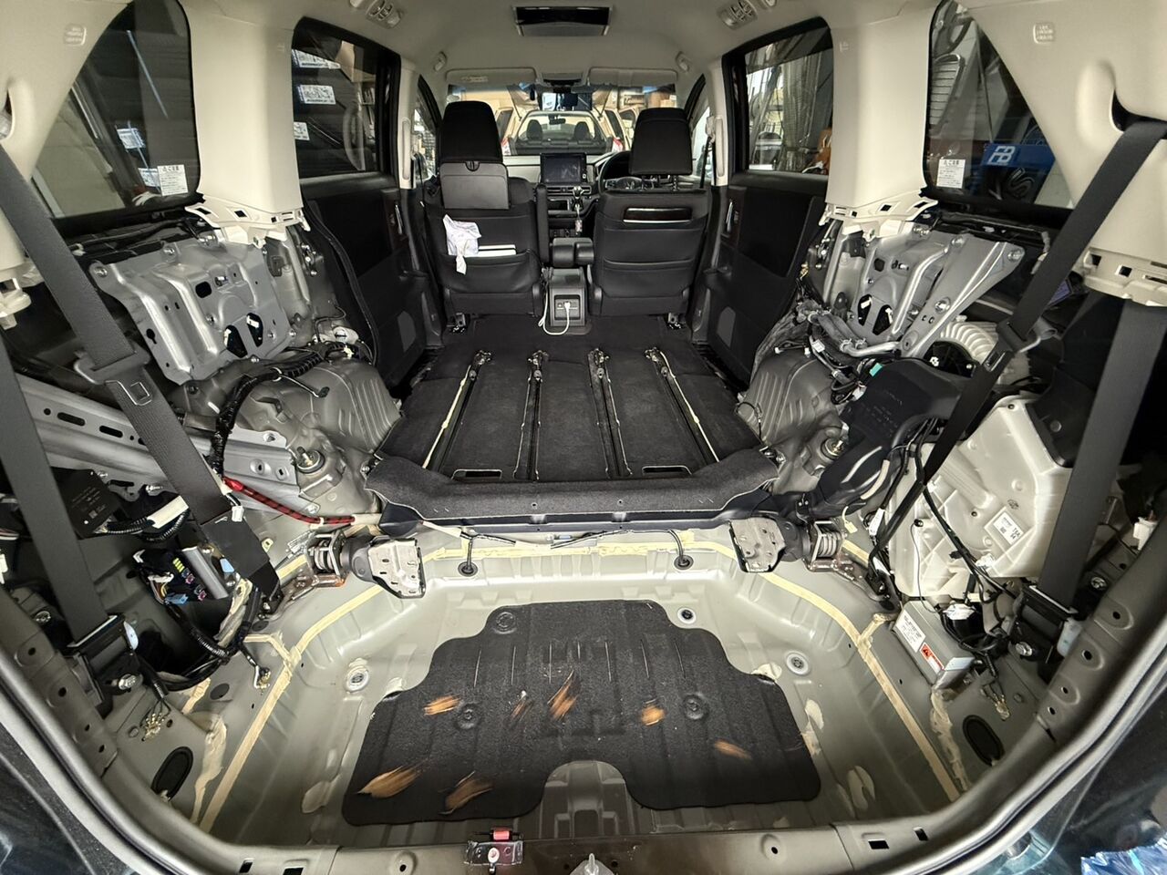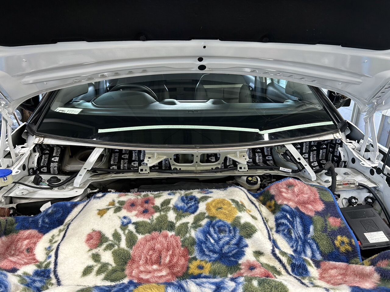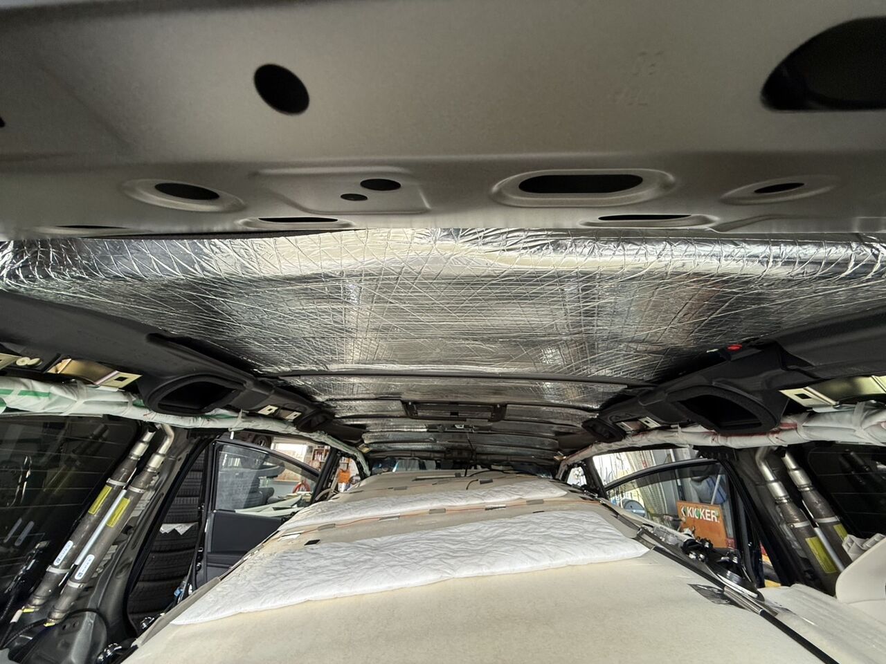 調音施工の「基本プログラム」をベースに、オプション「バルクヘッド部」、「フェンダー部」、「リアラゲッジ」、さらにリアシート下、ルーフには遮熱施工を施させていただきました。