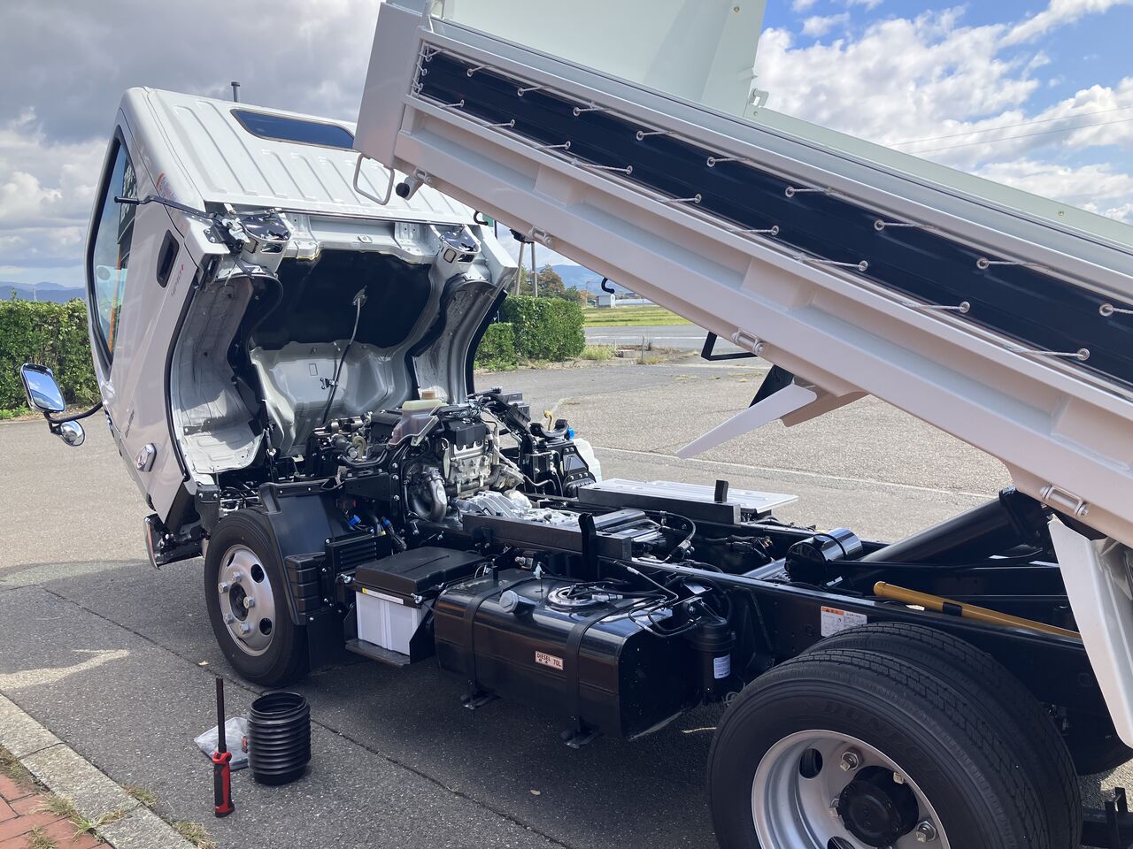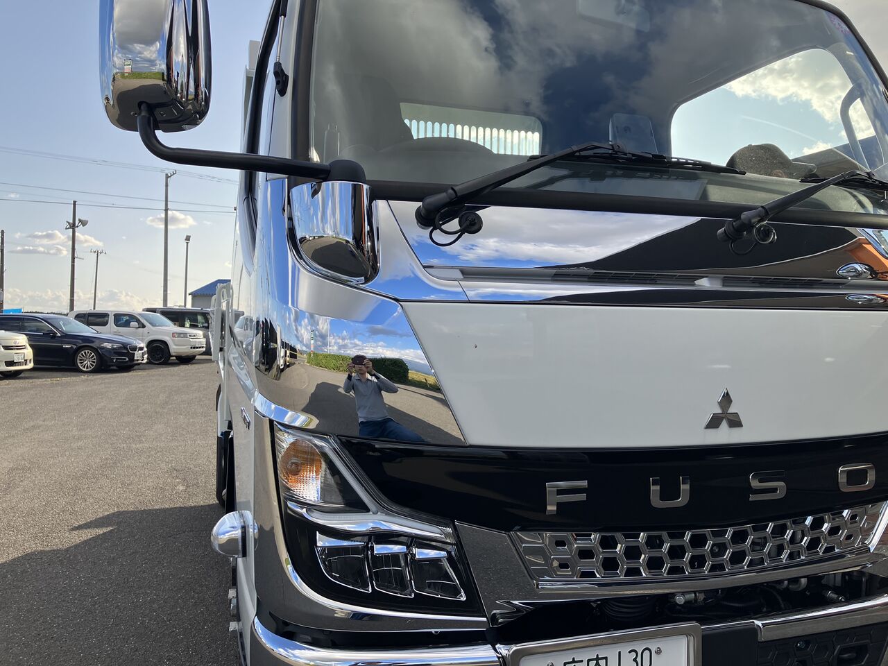 日々いろいろなお車作業させていただきます。今回のキャンターにはカロの9インチナビ&バックカメラを取付です。
