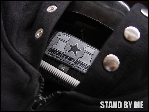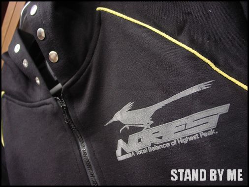 両袖に「NORIES」と「ONE BITE ONE FISHE」のロゴをプリント。