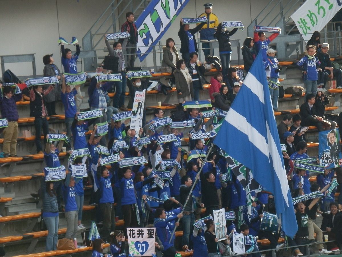 徳島ゴール裏の横断幕。汎用性の高い色使いですね。