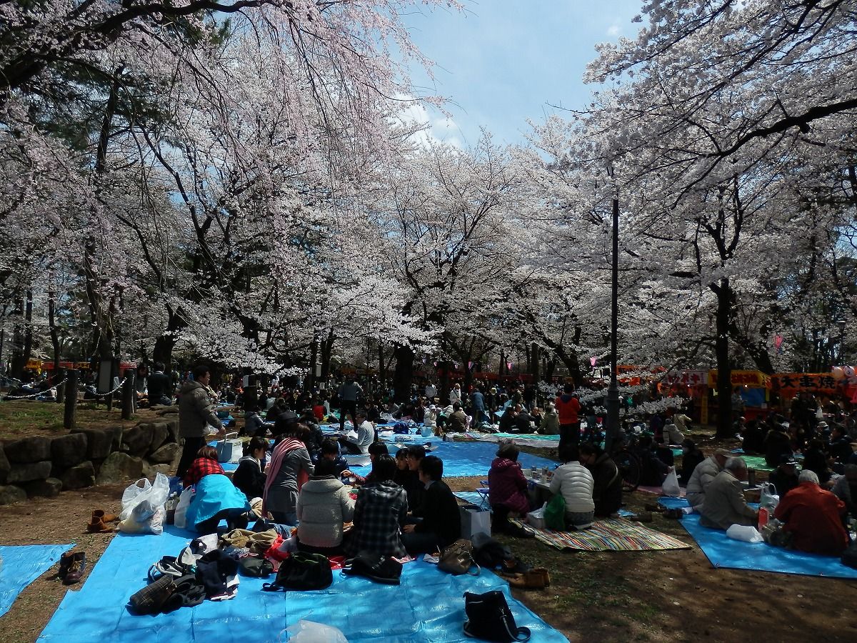 試合の前に、大宮公園で花見なんぞを。