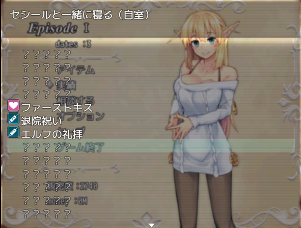 上記の通り、ストーリーの目的はセシールを介護し、快復させ、一緒に魔女世界を体験することです。