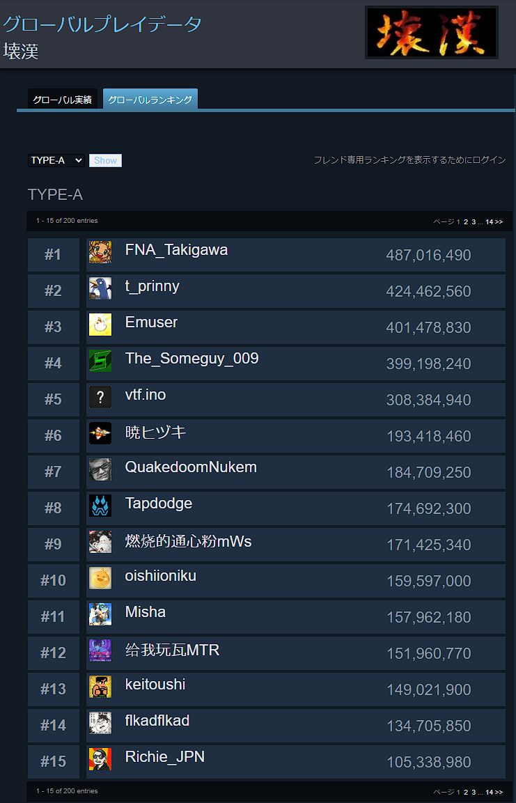 ・ランキングを自機タイプごとに集計(LRボタンで表示切り替え)