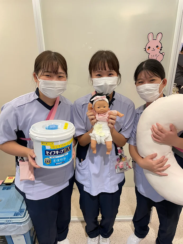 病棟独自で勉強会を開いたりして新人看護師だけでなく、スタッフ全体で知識を深めています。さらに、新生児病棟ならではの資材もたくさんあるので、自分のペースで少しずつ練習を重ねて、安全で優しい看護が行えるようにみんな日々頑張っています!