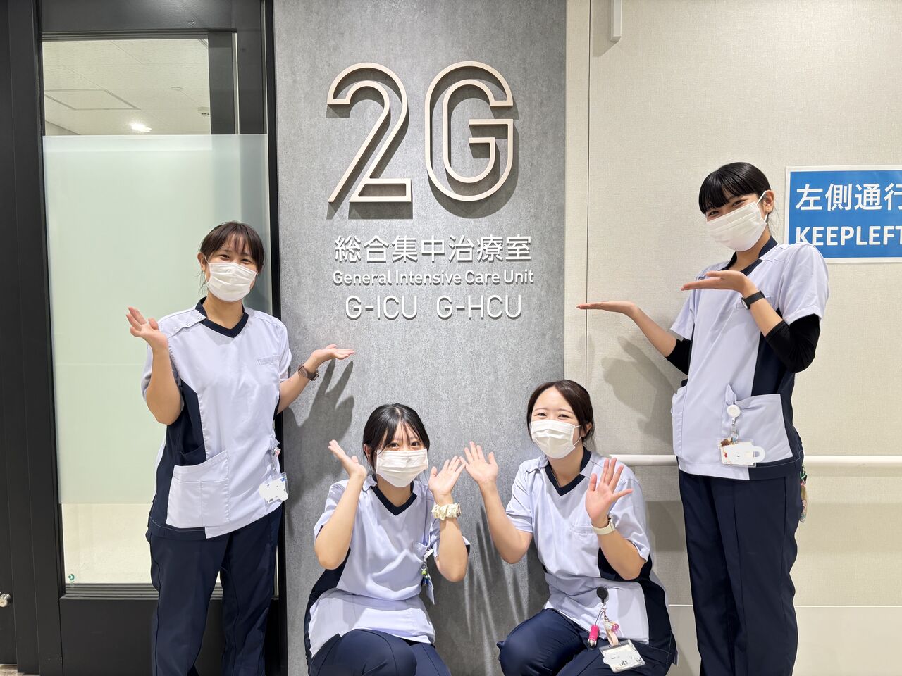 私たちが働く2東、ER(救急外来)、EICU(救命集中治療室)、EHCU(高度治療室)では、まさに「命を救い、命を守り、命を繋ぐ」命の最前線の現場が広がっています。救急搬送されてきた患者さんの迅速な処置、医療機器に囲まれた重症患者の集中ケア、ご家族の不安を支える声かけまで、看護師の役割は多岐にわたります。