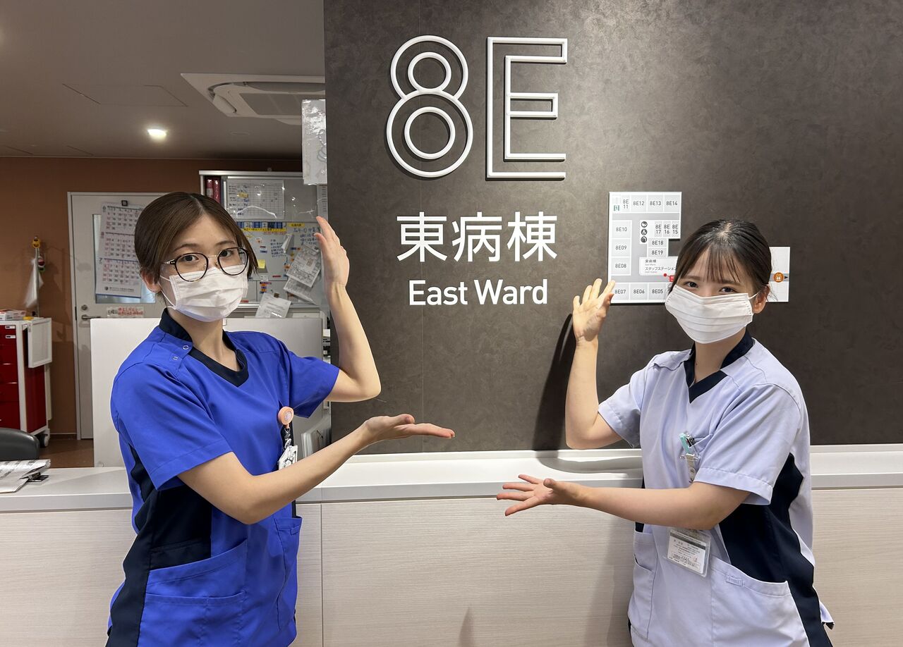 8東病棟では、経験できる処置や技術がとても多く、初めてのことには不安を感じますが、先輩方の指導のもと知識・技術を磨くことができます。そのため、自分自身ができる看護の幅を広げることや看護の質を高めることができます。1年目の頃は、仕事や生活に慣れるのが大変でしたが、2年目となり看護を楽しく感じることも増えてきました。重症度の高い患者さまや多くのケアを必要とする患者さまの受け持ちができるよう頑張っています。