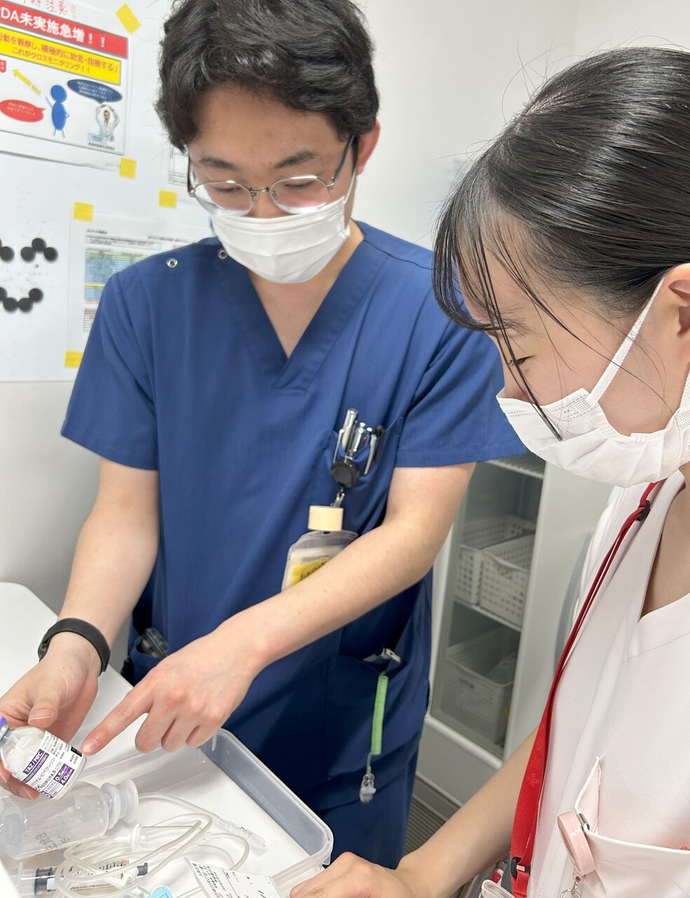 今年度は、チューターとチューターフォロワーが中心となって、いろいろな手技の演習を業務の合間に行っています。机上の勉強も大切ですが、実際に見て・触れて・やってみることで、よりイメージがつきやすく実践に繋げて行けます。