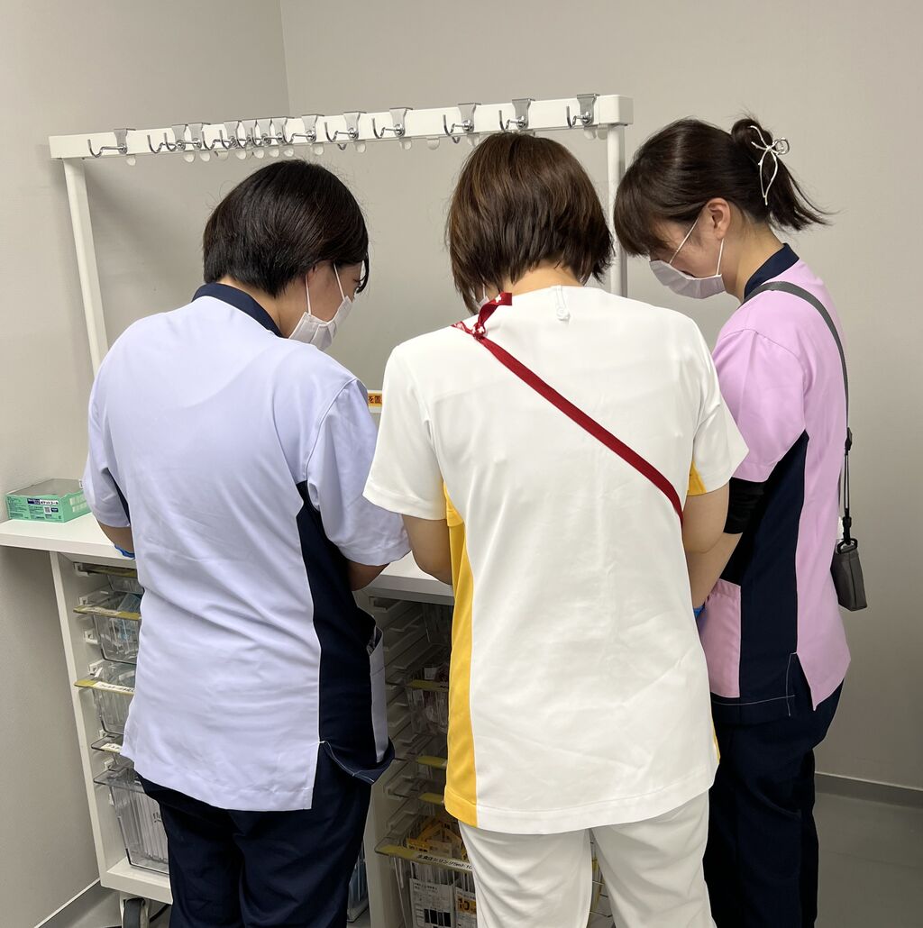 少しずつできることが増え、受け持ち患者さんも増えていく中で、演習で学んだ技術を活かしたケアができるように新人さん2人で、切磋琢磨しています。そんな様子を見ている先輩たちも、新人さんに負けず、患者さんにより良い看護を提供できるよう、日々頑張っています。