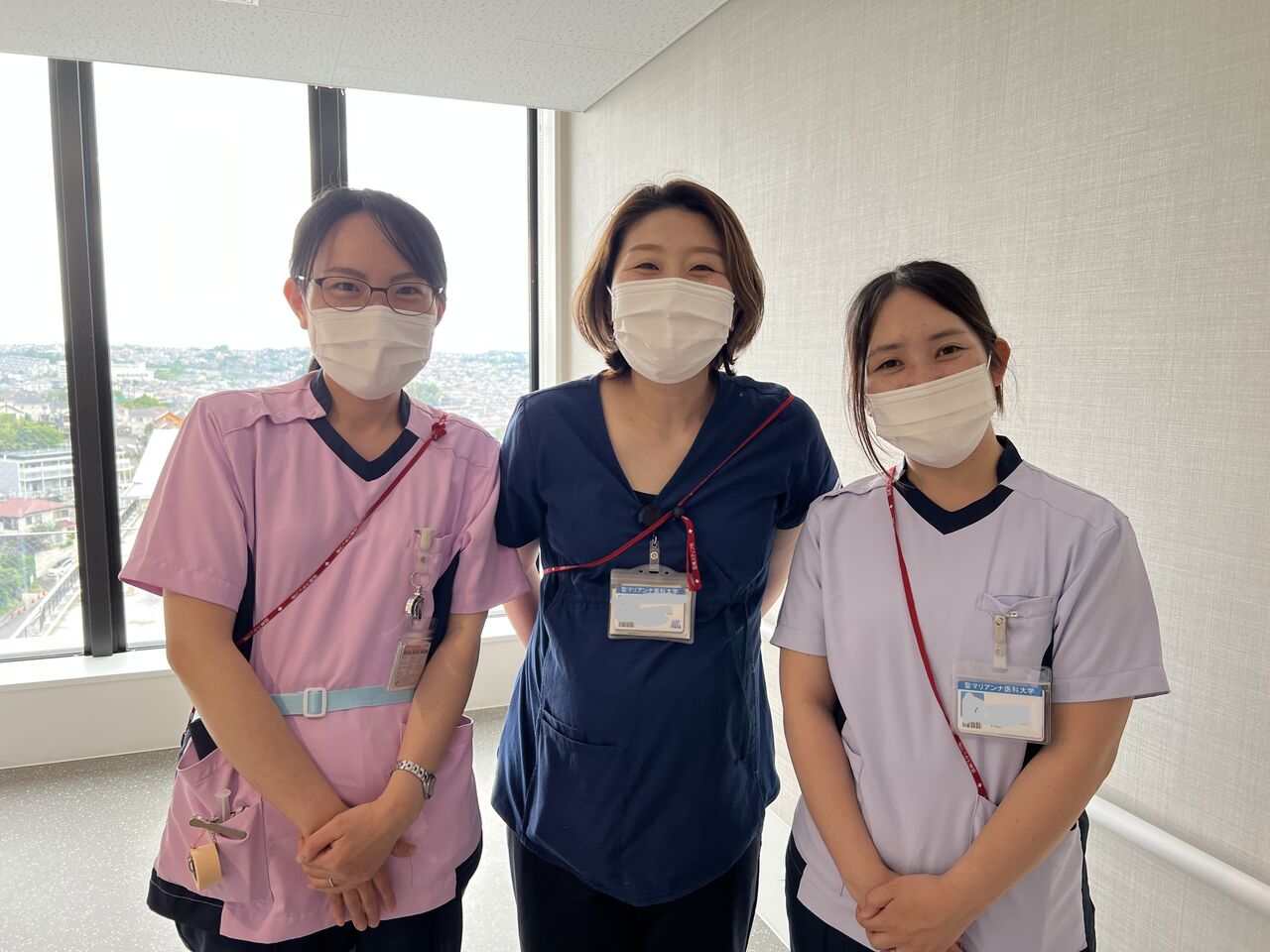 聖マリアンナではチューター制度を設けており、病棟全体で新人教育をすることはもちろん、その中でも3~4年目の年齢の近いスタッフがチューターとなり、勉強面・精神面でのサポートを行っています。そのため、不安なことがあったときや、成長出来てうれしいとき、一番に話ができる一番近い存在がいるようになっています!経験年数が近く、比較的話しやすい先輩が一人に一人ずつ付くことで、新人さんそれぞれの教育の進み具合が把握しやすく、サポートもしやすいのに加え、新人さんとチューターの二人三脚で進んでいくので、関係性も深まりやすく、一番近くにいてくれるお姉さんという感覚で安心してお話もできます😊💛