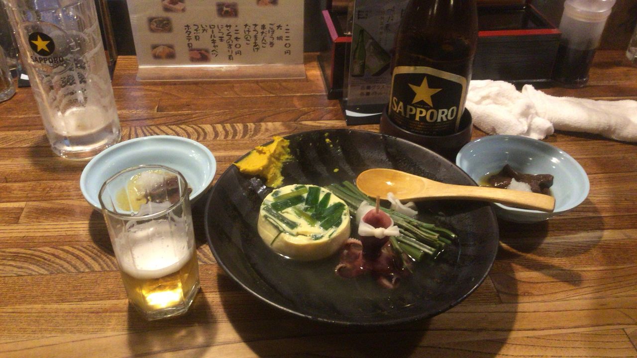 ちびちびアツアツのおでんをつまみながら、