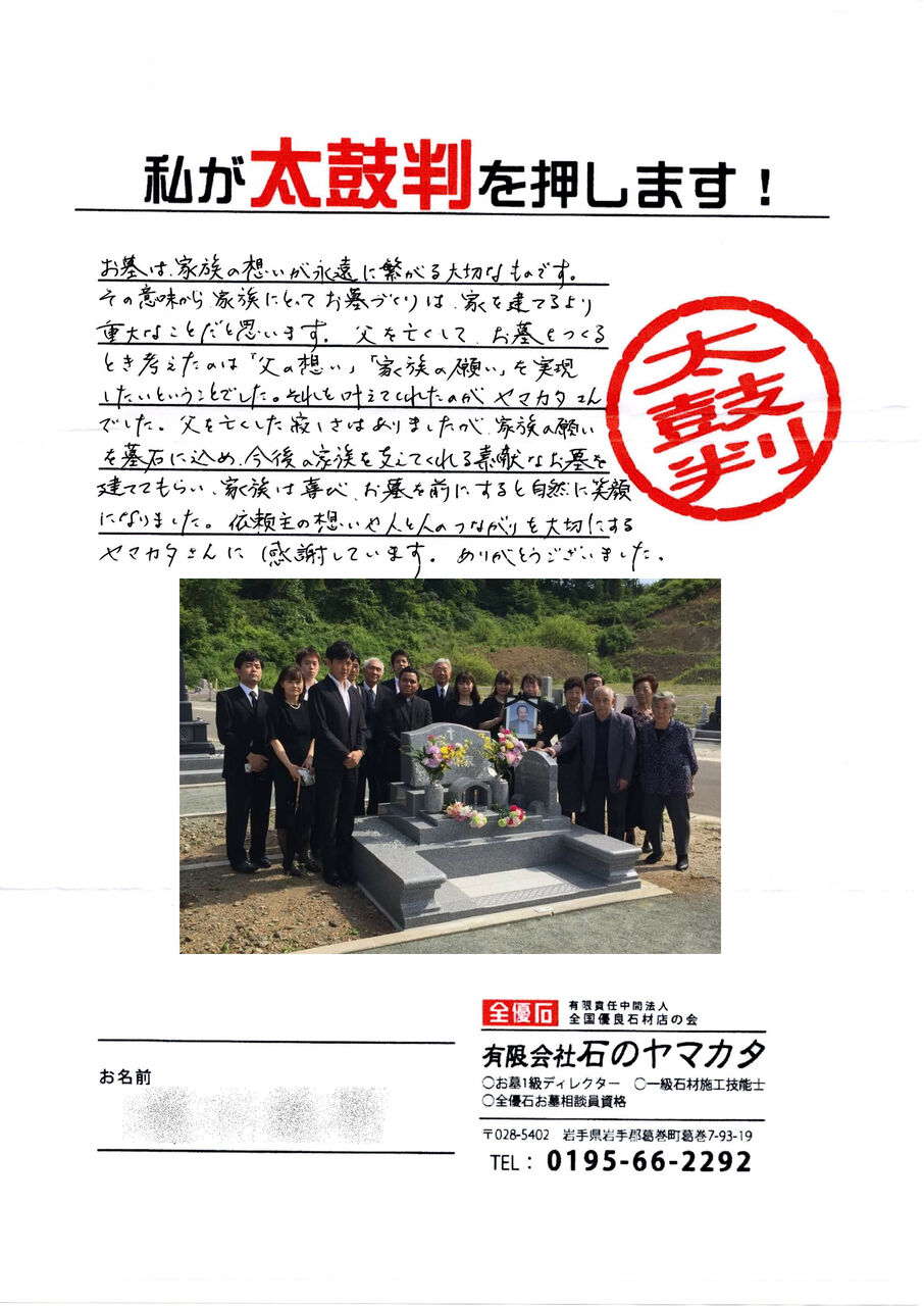 ●熱く、想いのこもったお墓完成後のお客様の声