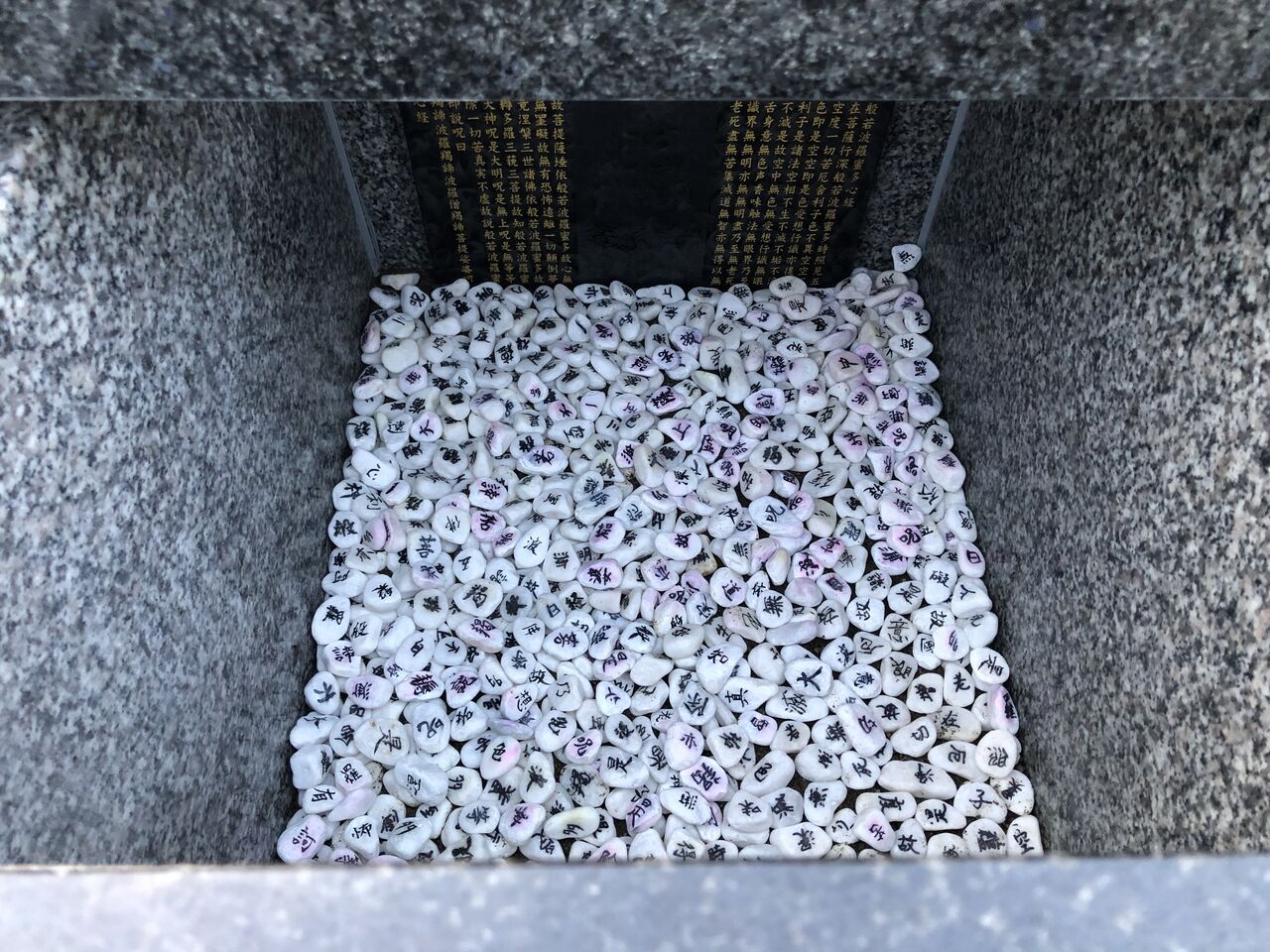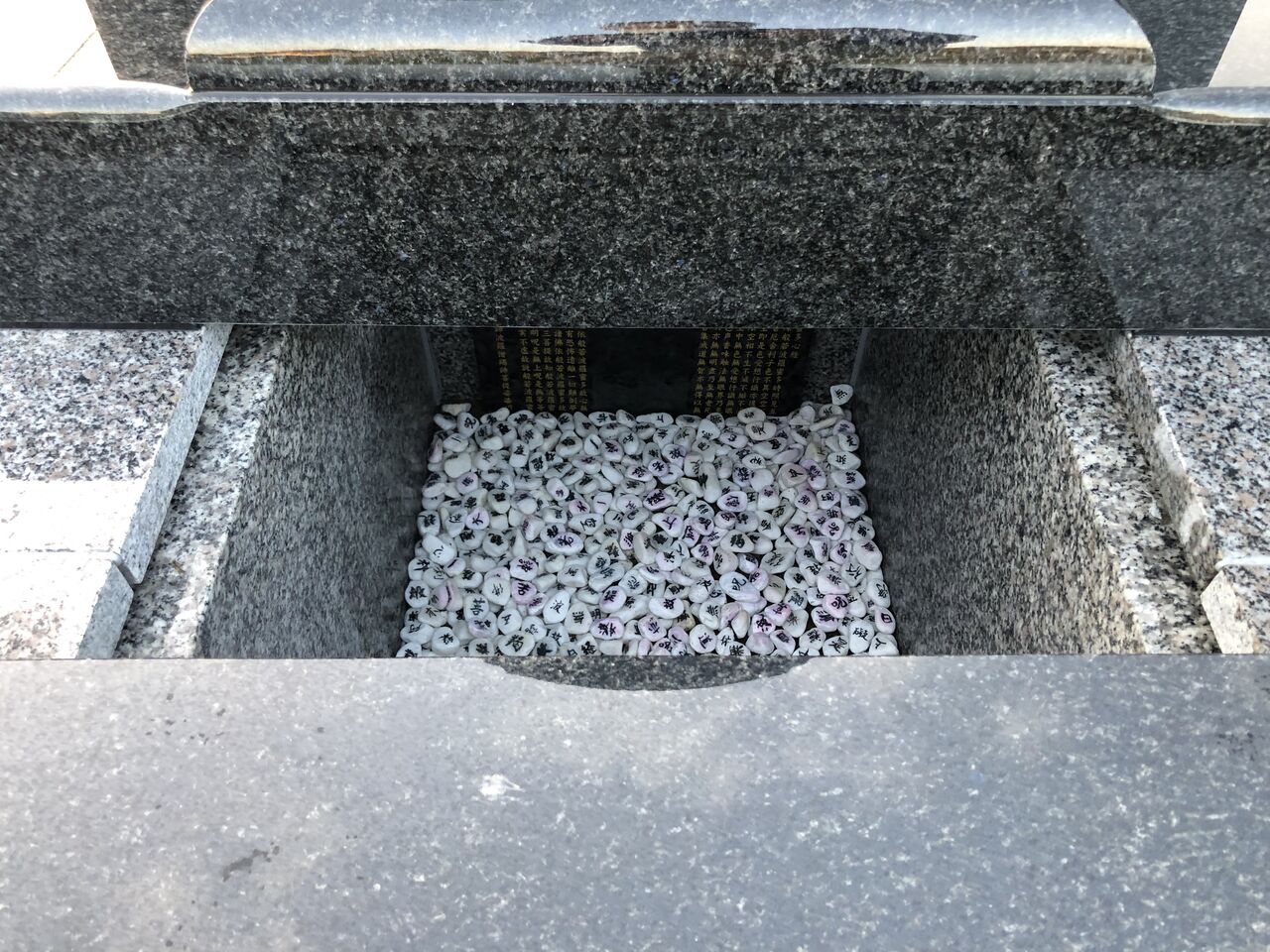 家族みんなが1文字づつ書いた「写経石」を敷きました。