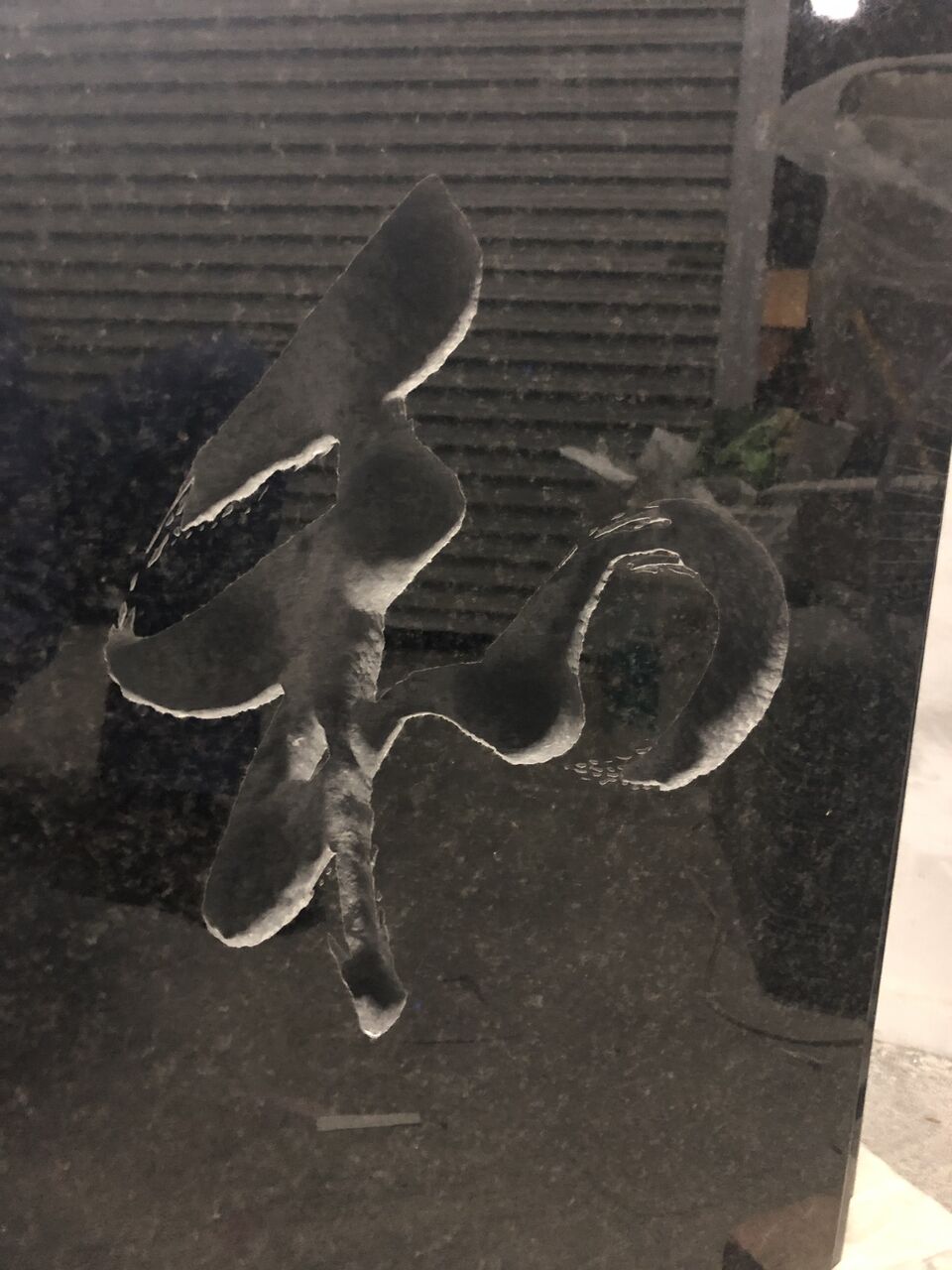 超集中で娘さんの字を、石の彫刻・表現。