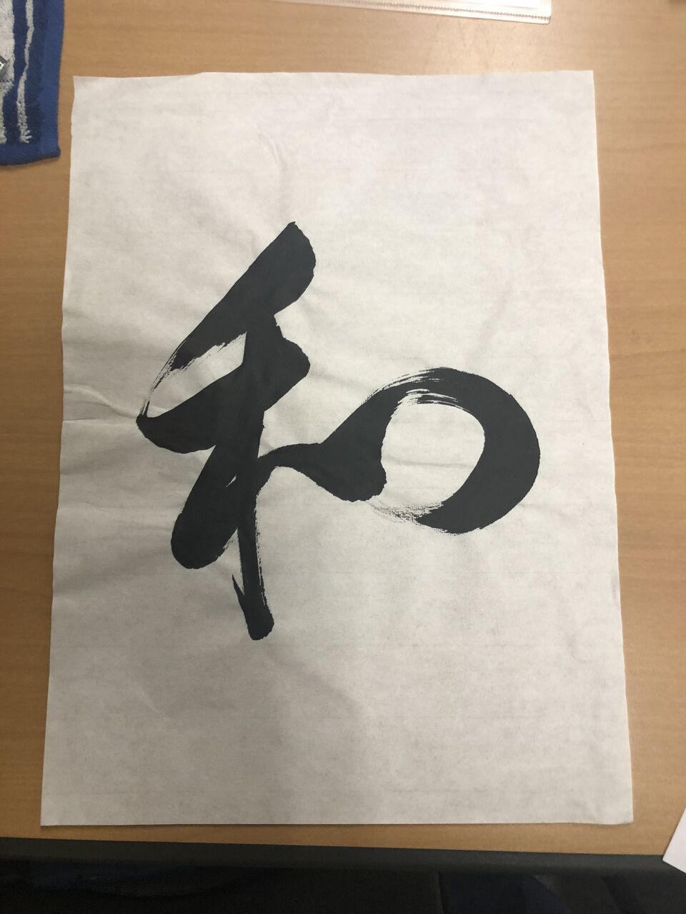 娘さんから渡された正面の文字「和」の書道の文字。