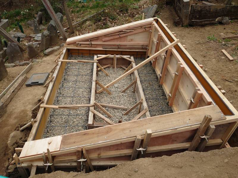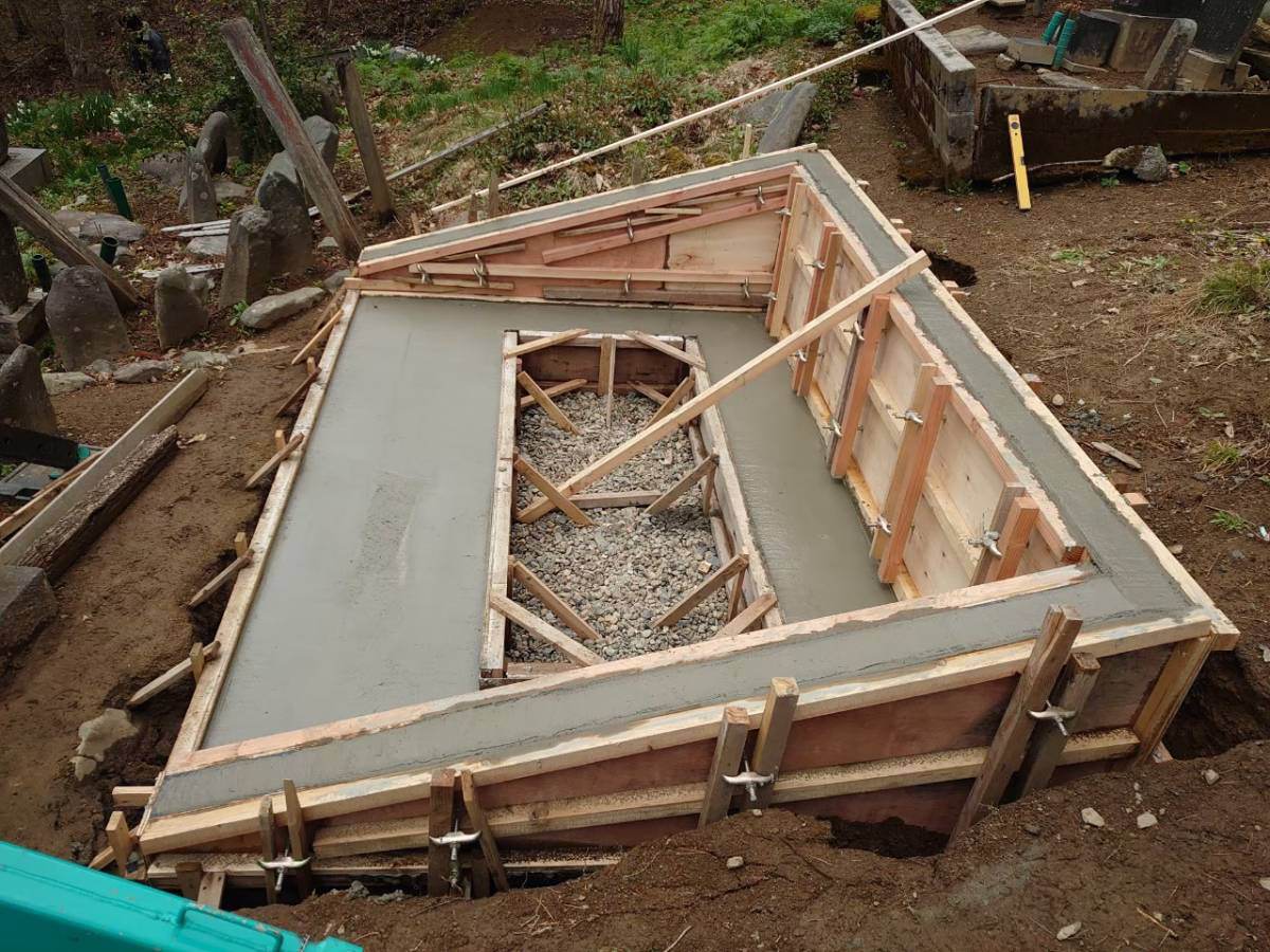 墓地全体も傾斜が強く、基礎との一体の土留めが必要。