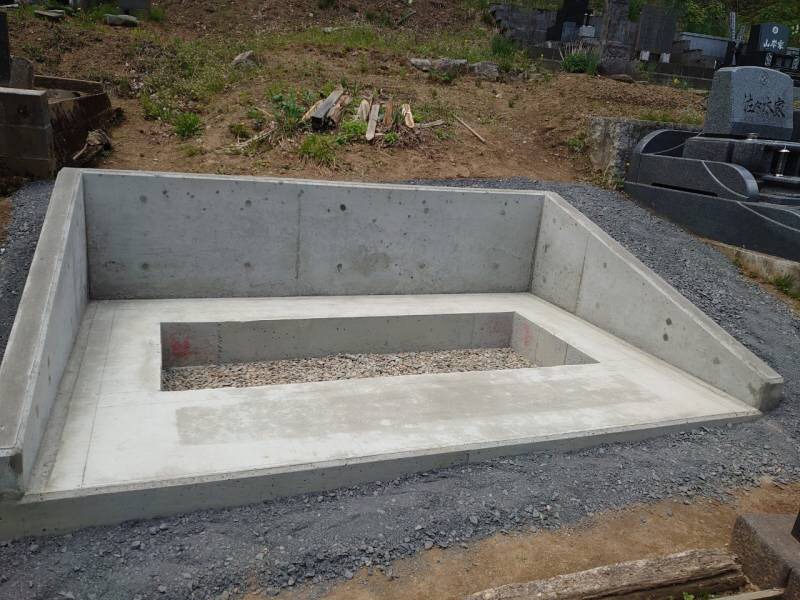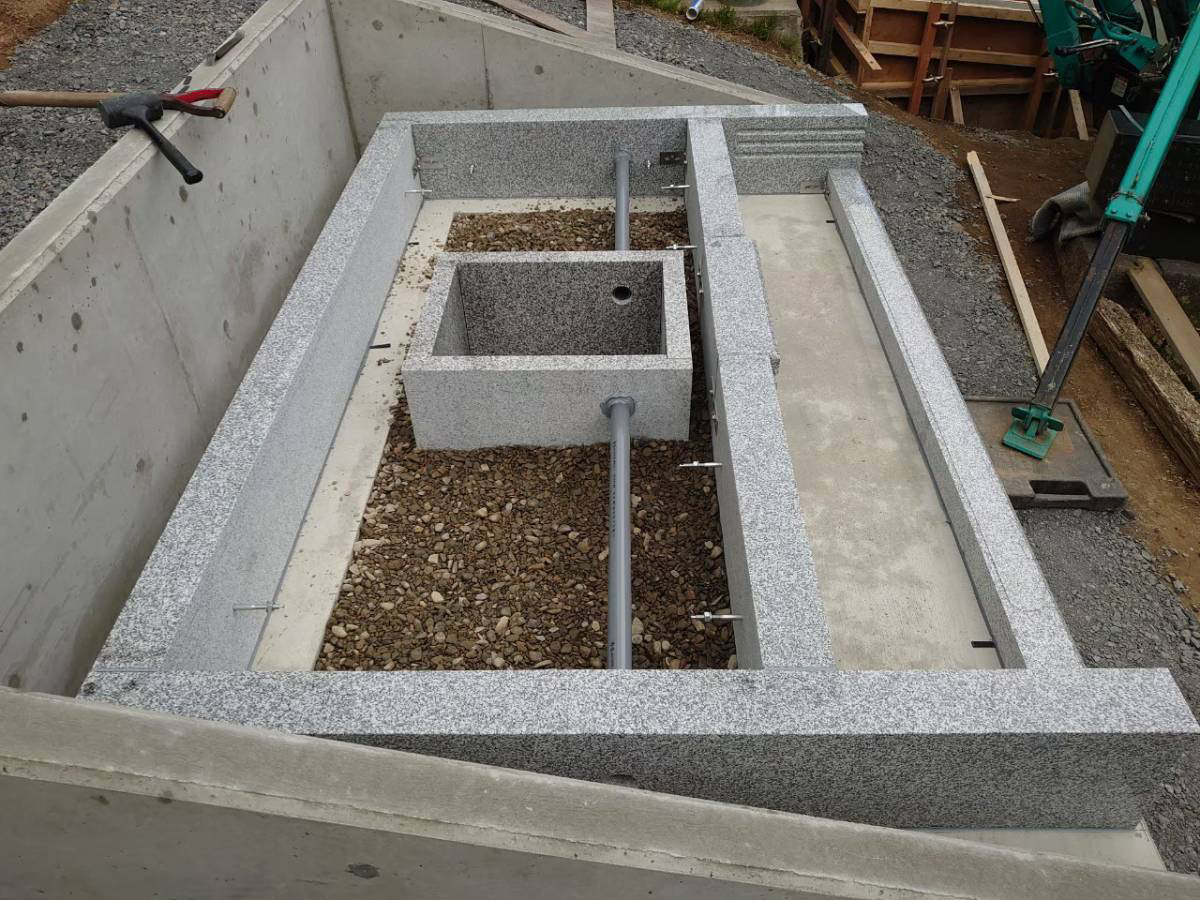 墓地内御影石張り石、御影石納骨堂。