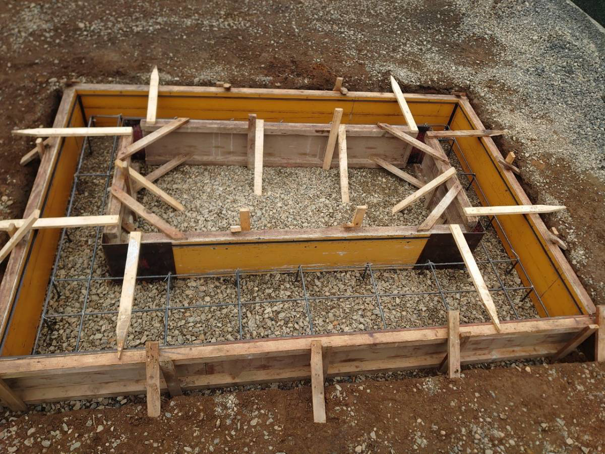 型枠作業、鉄筋も設置。