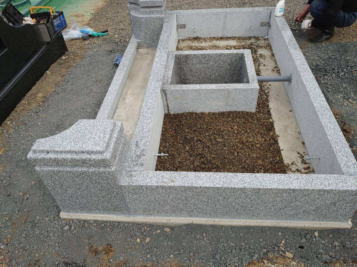 墓地外柵組立て、