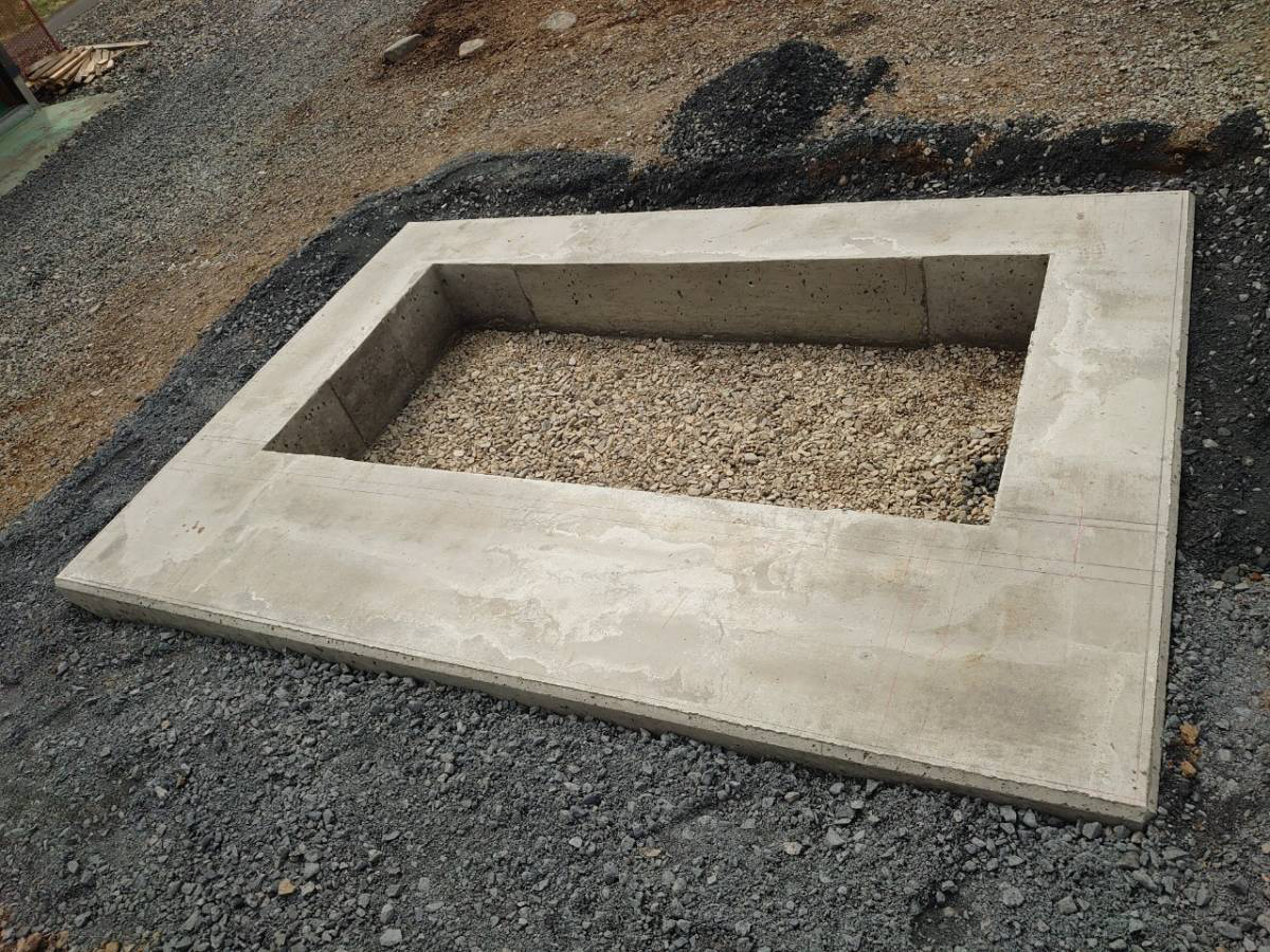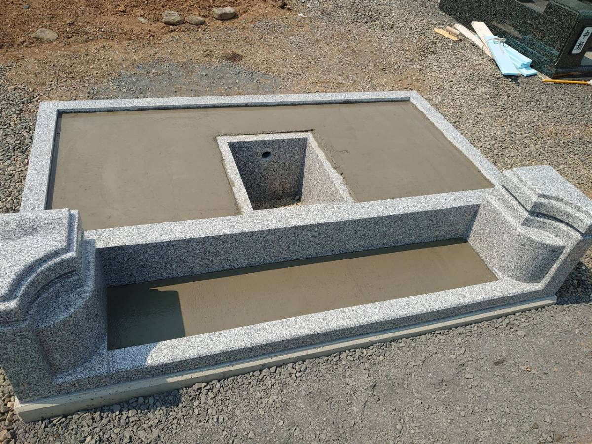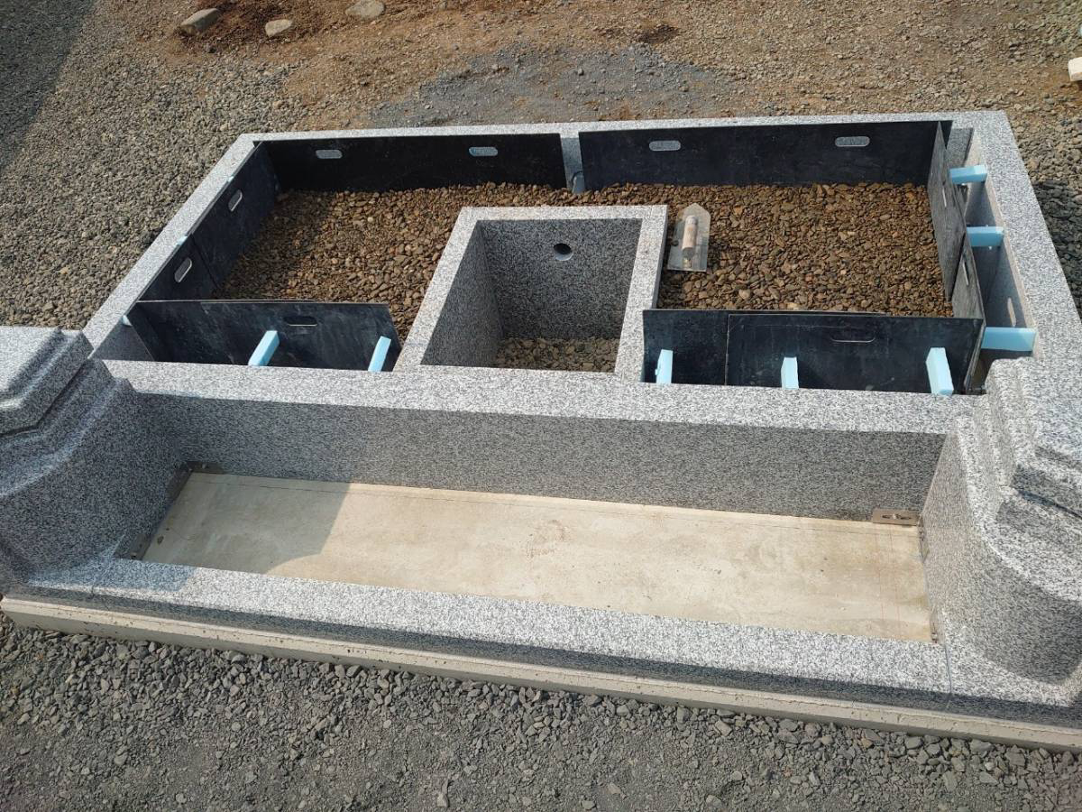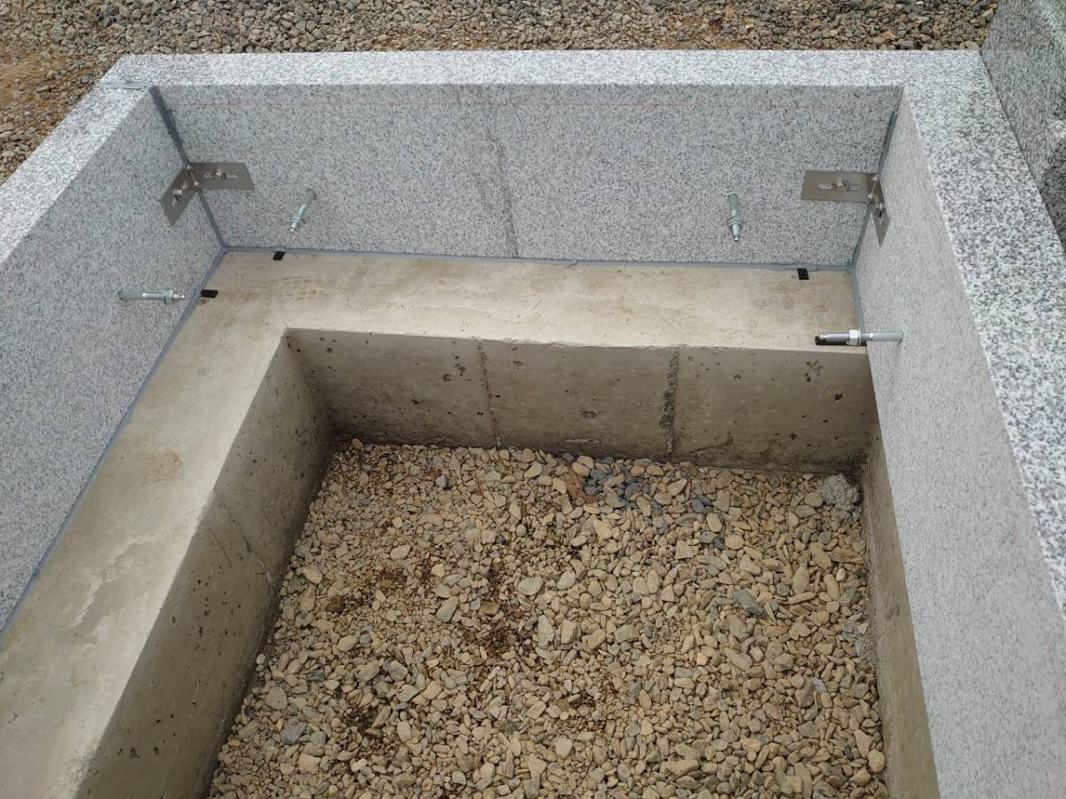 墓地外柵と基礎の結合のため、内部コンクリートを入れます。