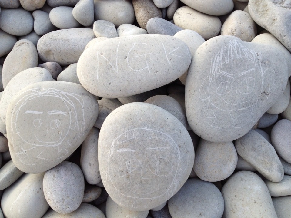 石に3人の似顔絵を描いてくれました