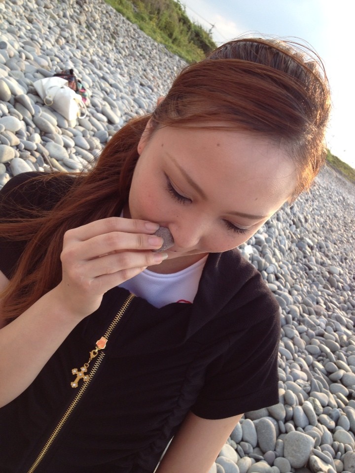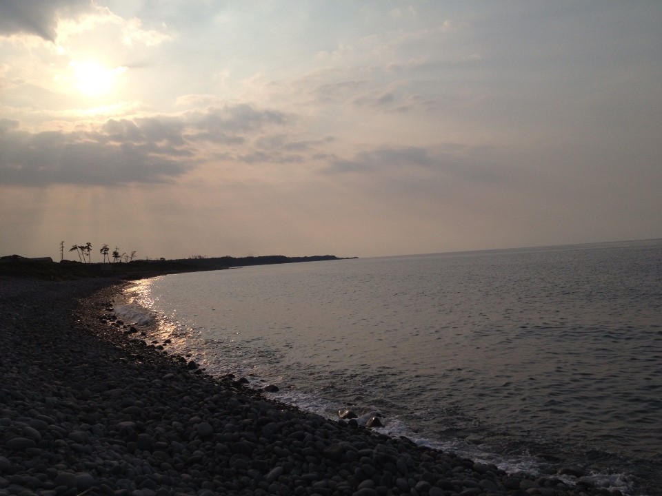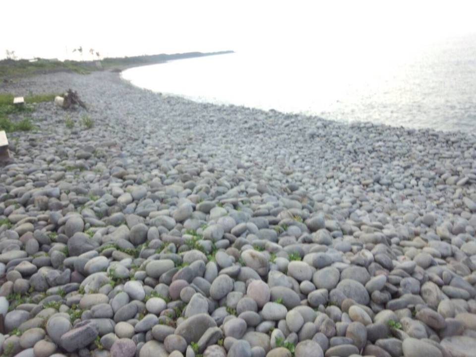 足元にある石はどれもまん丸くて、波で動く時に石と石がぶつかり合って「カラカラ」と音がするの