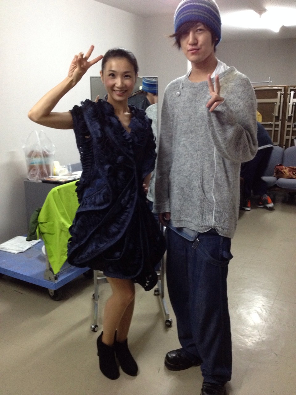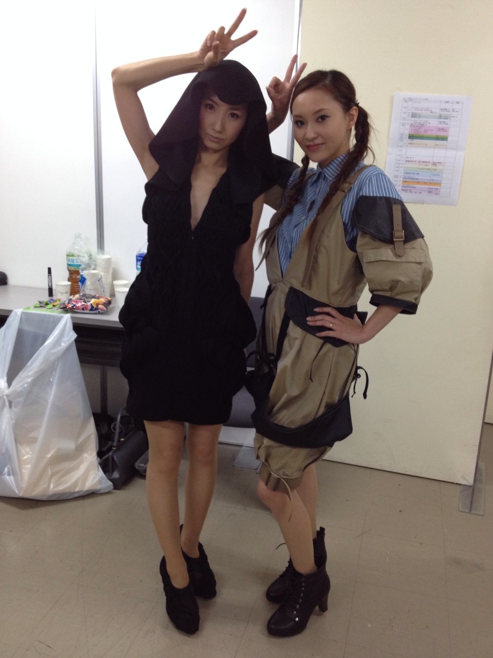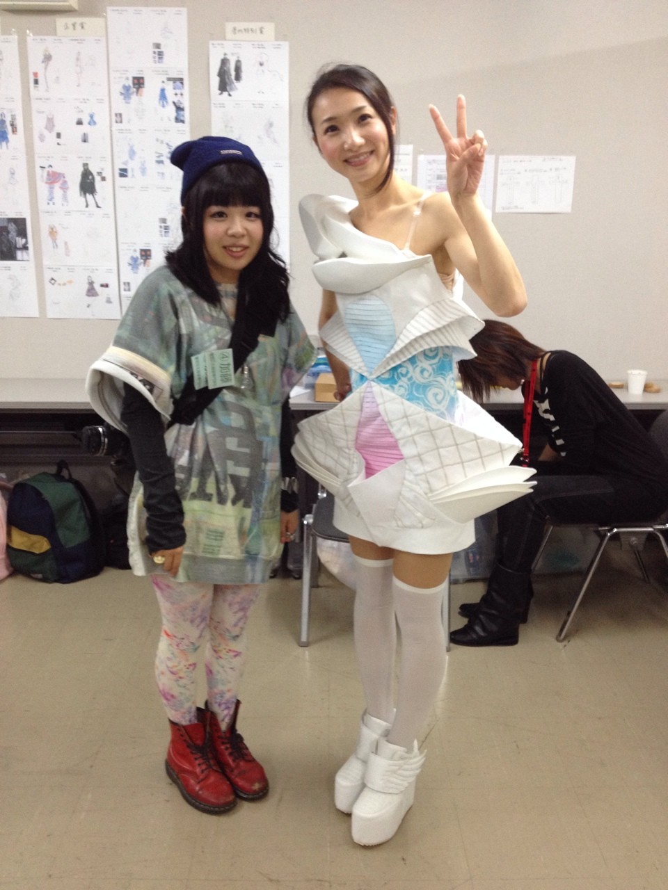 私とSAKRAちゃんは、にこにこピースなんかしちゃってるけど、私の衣装はデザイナーさんが必死に着せてくれつつ、ヘアは三宅さんが整え中