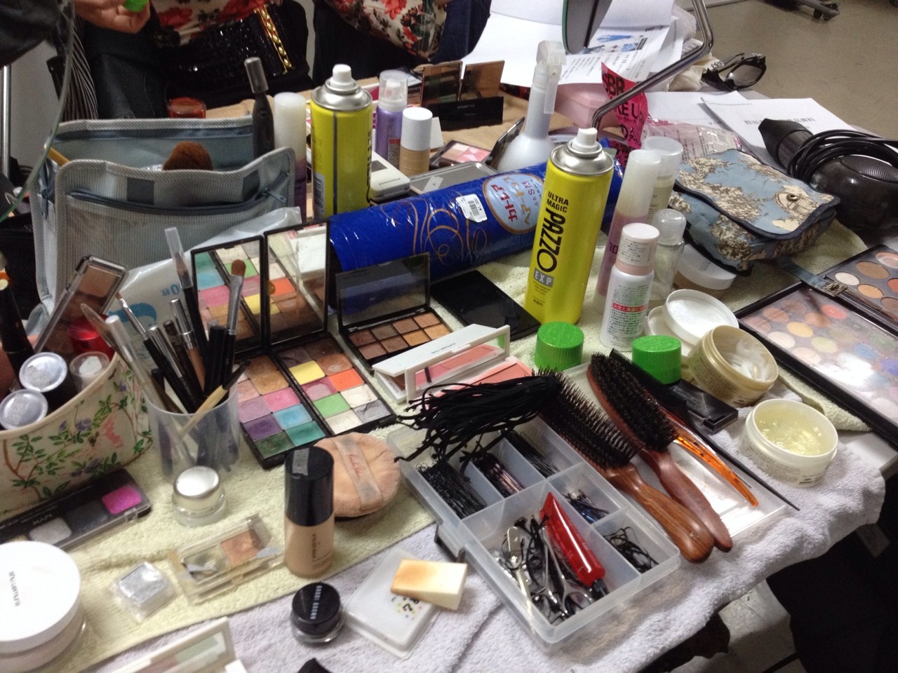 みんな、高いヒールの靴が多いから、池岡さん、椅子の上に上がってみんなのヘアチェンジ