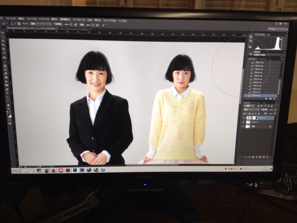 シャッター押してるカメラマンさんは、私がふざけた顔してるの分かってたんだけど、パソコンを操作してて画像が出るのを待ってたカメラマンさんは、パソコン画面しか見てなかったから、