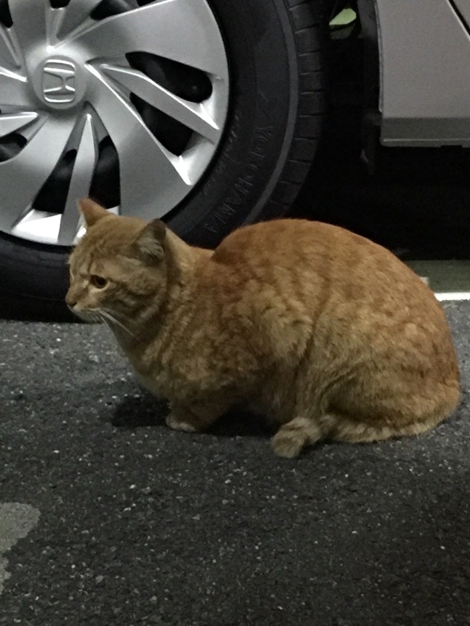 この後、チャリが来て、猫ちゃん逃げて行った