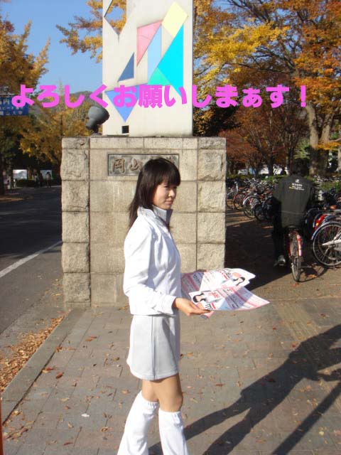 当日は岡大津島キャンパスの学際で、正門前でしっかりチラシ配りをさせて頂きました。