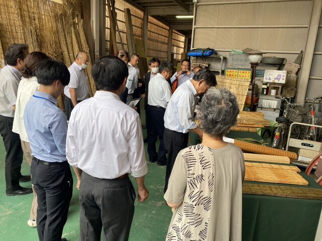 近江匠人事業者として認定して頂いている当社の商品や材料、仕事場などを、会長の説明の下、見学して頂きました。
