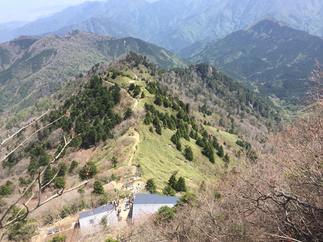 リフトを降りると小高い所に展望台があり、そこから石鎚山を望むと、
