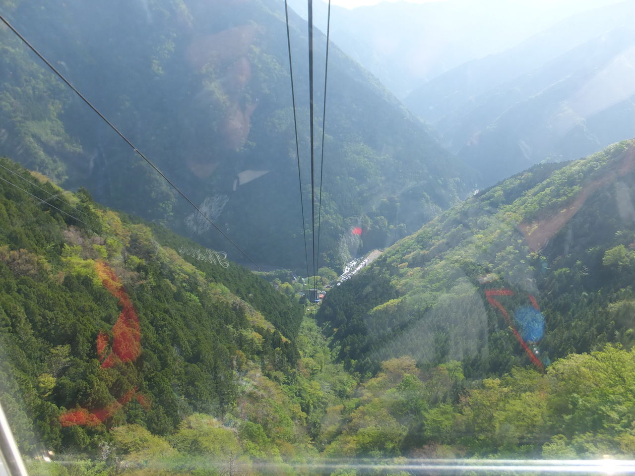 GW中は臨時便が7時40分から出ると聞いていたが、既にロープウェイは動いておりチケット売り場の混雑はなかった。 大人1人、往復で1950円!!