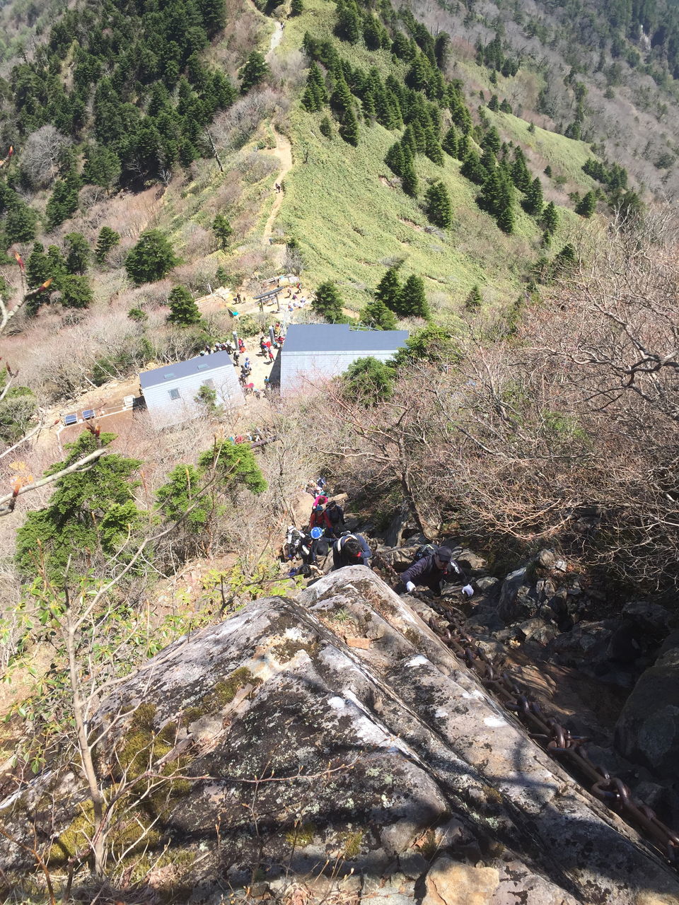 次回、石鎚山に登る時は朝一番のロープウェイはやめて、昼過ぎの便で登ると各鎖場はスイスイ登る事が出来るはず。頂上小屋に一泊の計画で登りたいものだ。