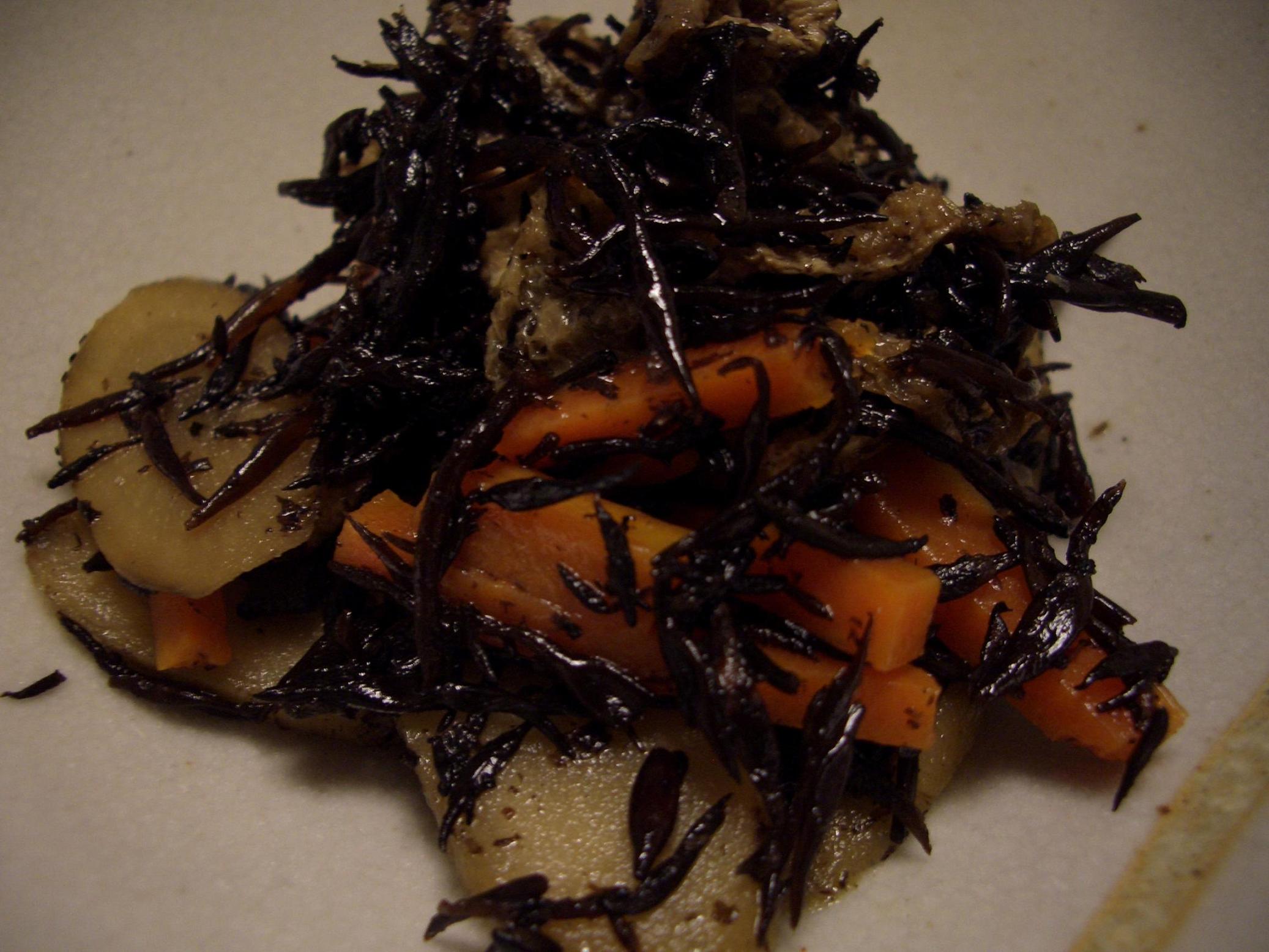 、これを椎茸の戻し汁、お醤油、お砂糖少々で、落し蓋をして汁気がなくなるまで煮込みました。思いがけず美味しい副菜ができましたっ。