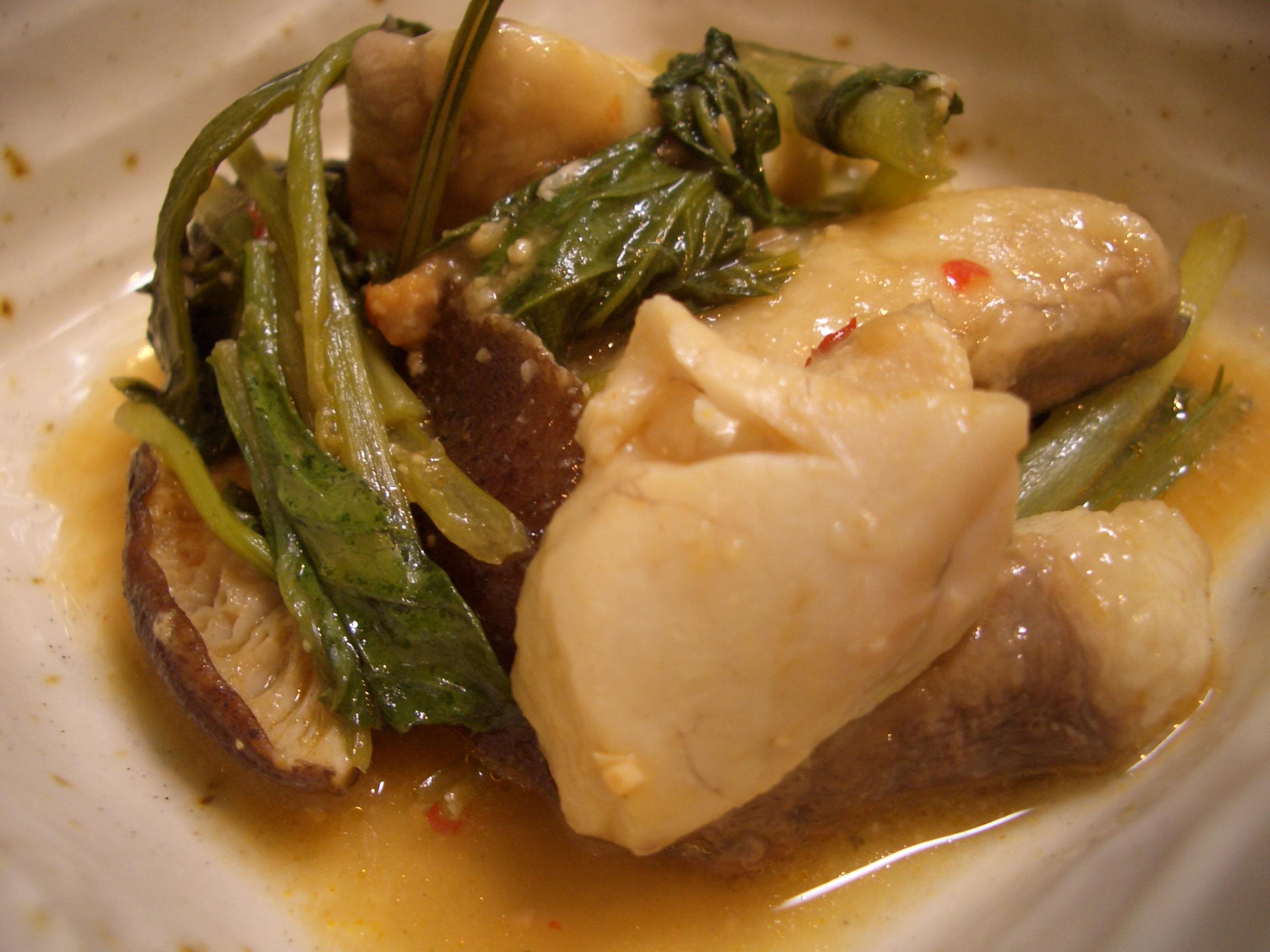 20時前のスーパーで、30%割引の赤札が貼ってあったので買ってみました。アクの少ない小松菜を半把、干し椎茸を戻したもの、イサキは片栗粉をまぶして。まず、花椒を20粒ほどフライパンに入れて(これがポイント)、香りがでたら、イサキを焼き、そこに干し椎茸、小松菜を入れて軽く炒めます。そこに、干し椎茸の戻し汁、味噌、お酒、お酢、砂糖で味をつけて10分ほどい炒め煮して出来上がり。辛味が欲しいときは豆板醤を入れるといいです。