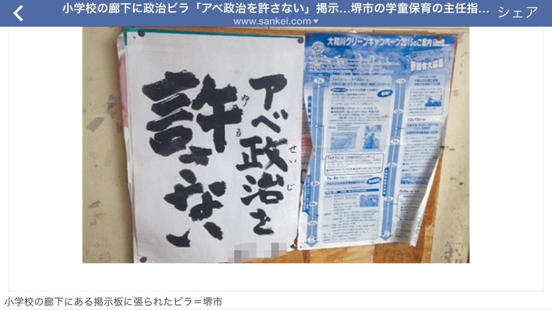 髙廣 海さんの数日前の投稿に学童保育の指導員が政治的ビラを掲出したという産経新聞の記事がありました。