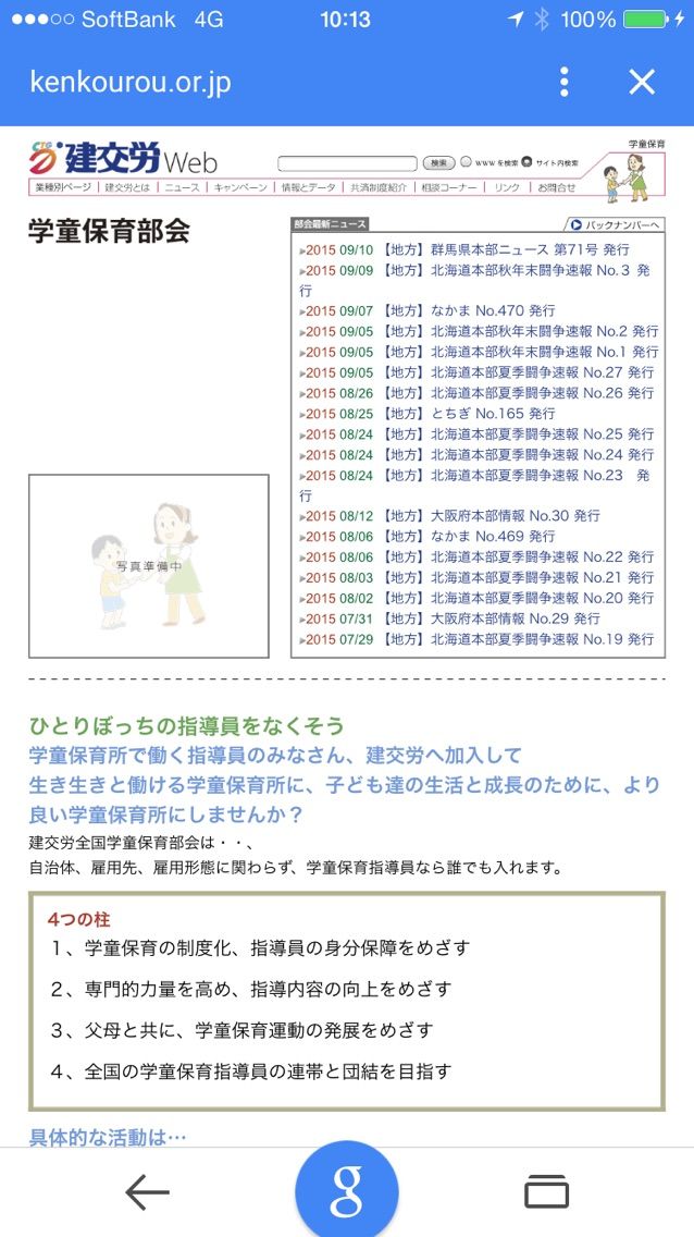 外郭団体の指導員は、公務員ではないので、自治労や自治労連などの公務員労働組合には入れません。ので、多くは「全日本建設交運一般労働組合(建交労)」という共産党系の労働組合に所属しています。建設や交通系の労働組合なのに、なぜか学童保育指導員部門というのがあります。