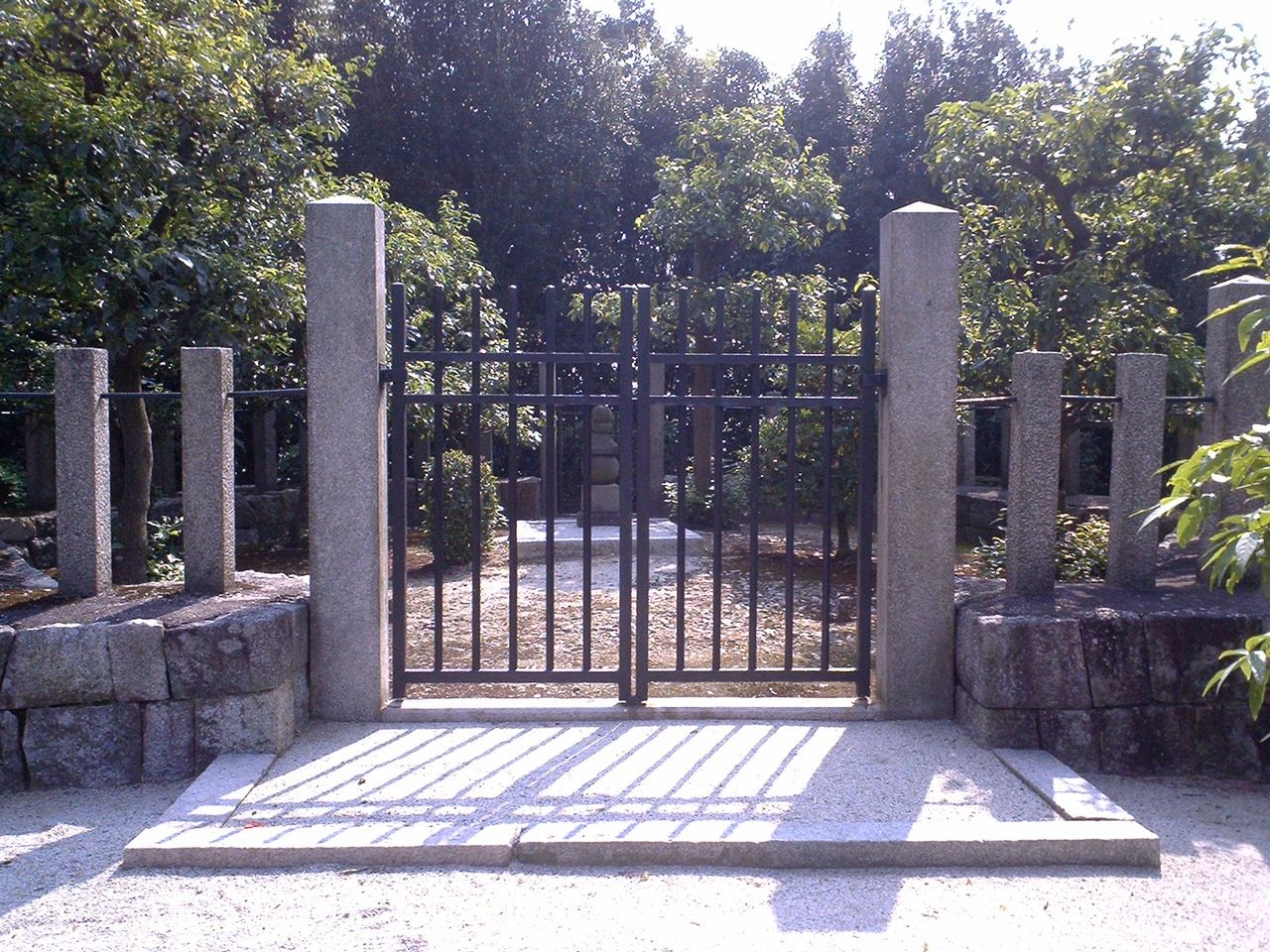 なお、墓の入り口には鉄の門があって直接参道には入れないのですが、門から続く生垣が途中で途切れているためそこから墓前まで行けます。