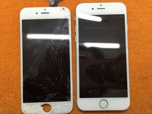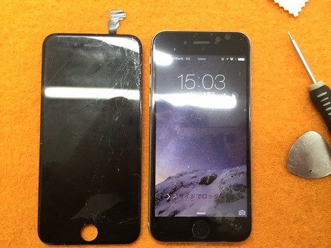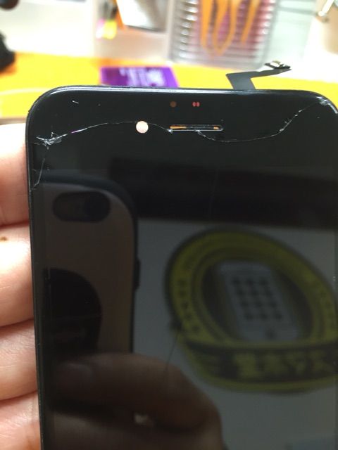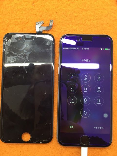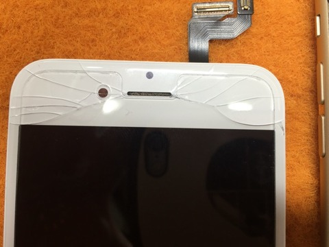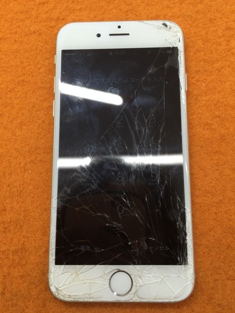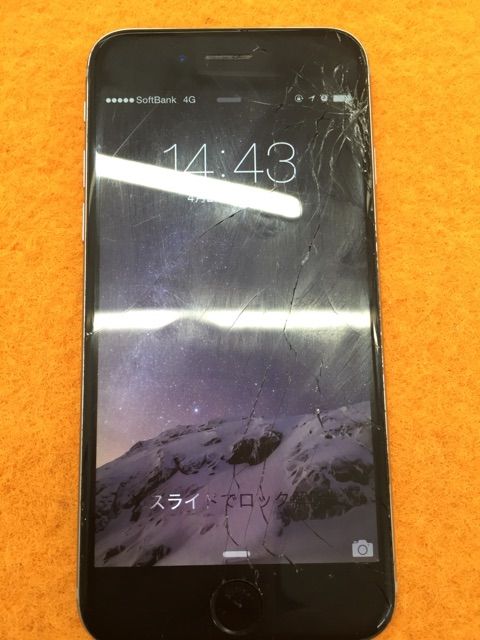 実は写真では写りにくいのですがホームボタンのところまで縦に一本ヒビが入り、タッチが一部効かない状態でした。。。が!無事修理完了でお引き渡し。いつもご利用ありがとうございますm(__)m