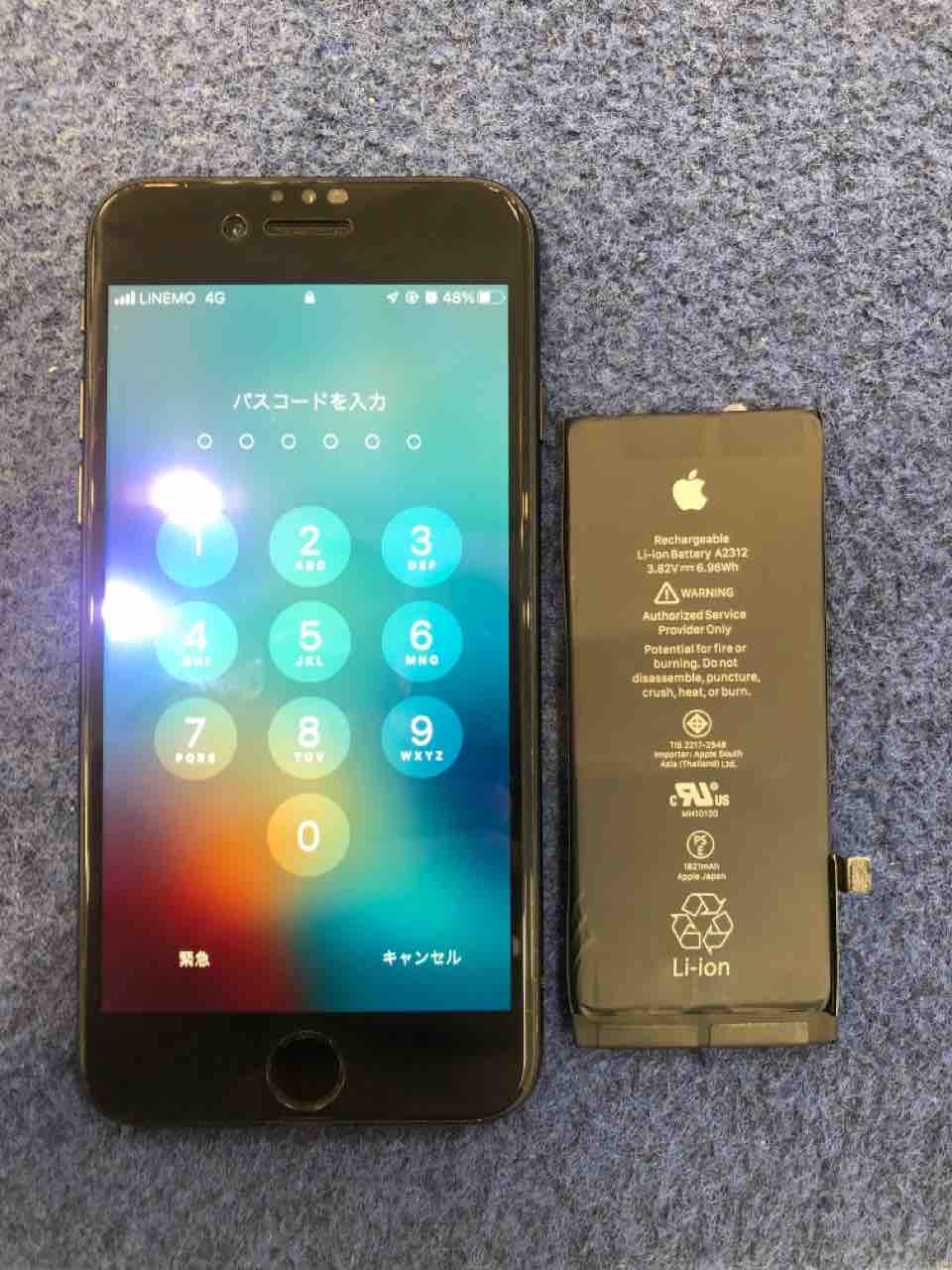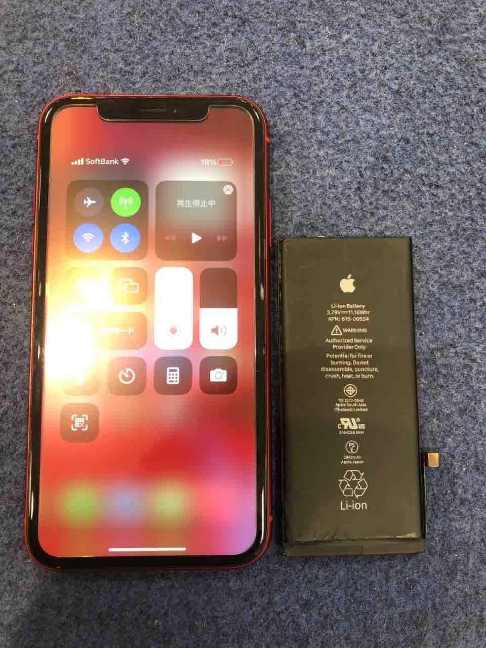 こちらもSoftBankユーザーのお客様のiPhone XR、バッテリー交換依頼